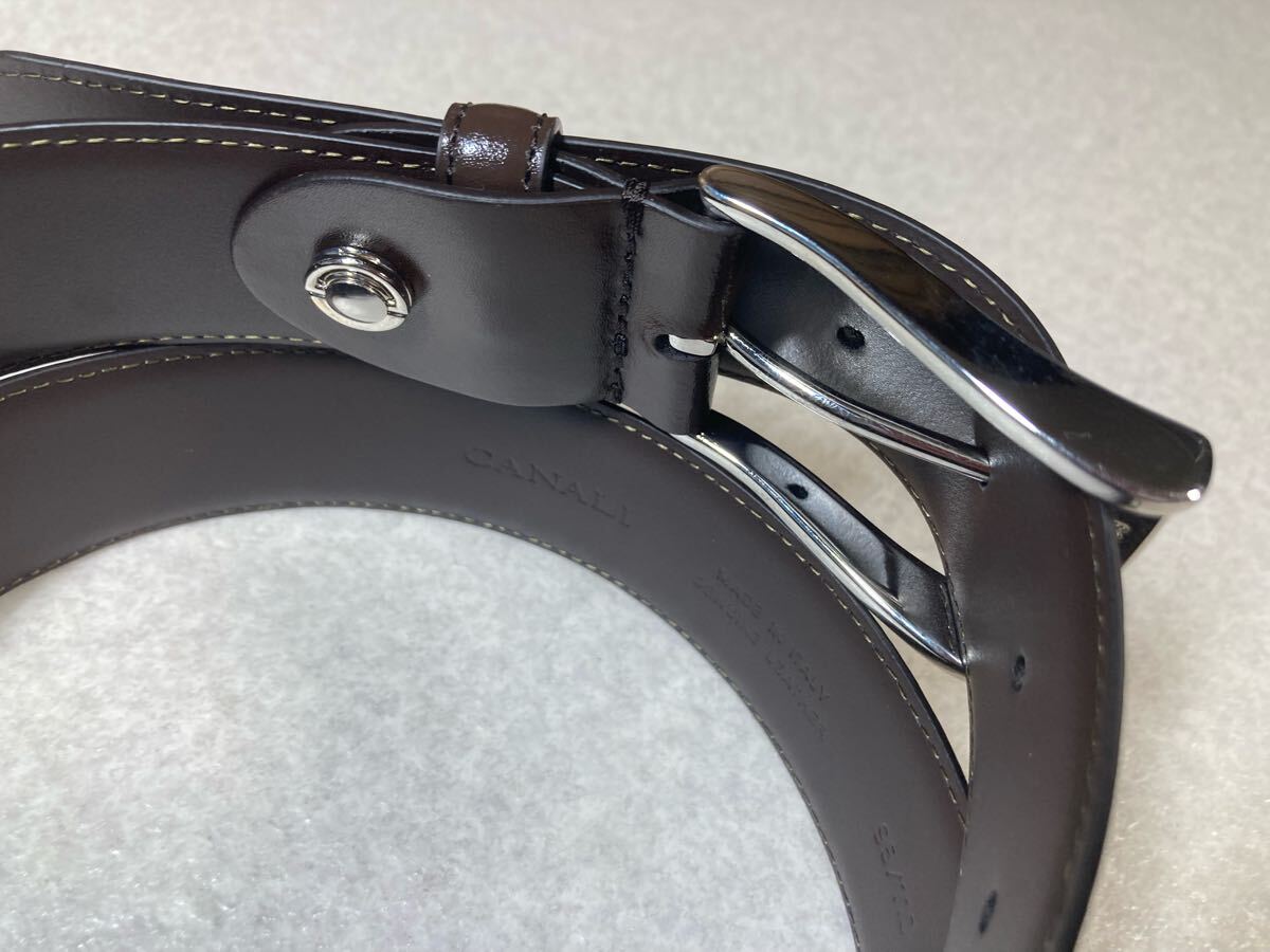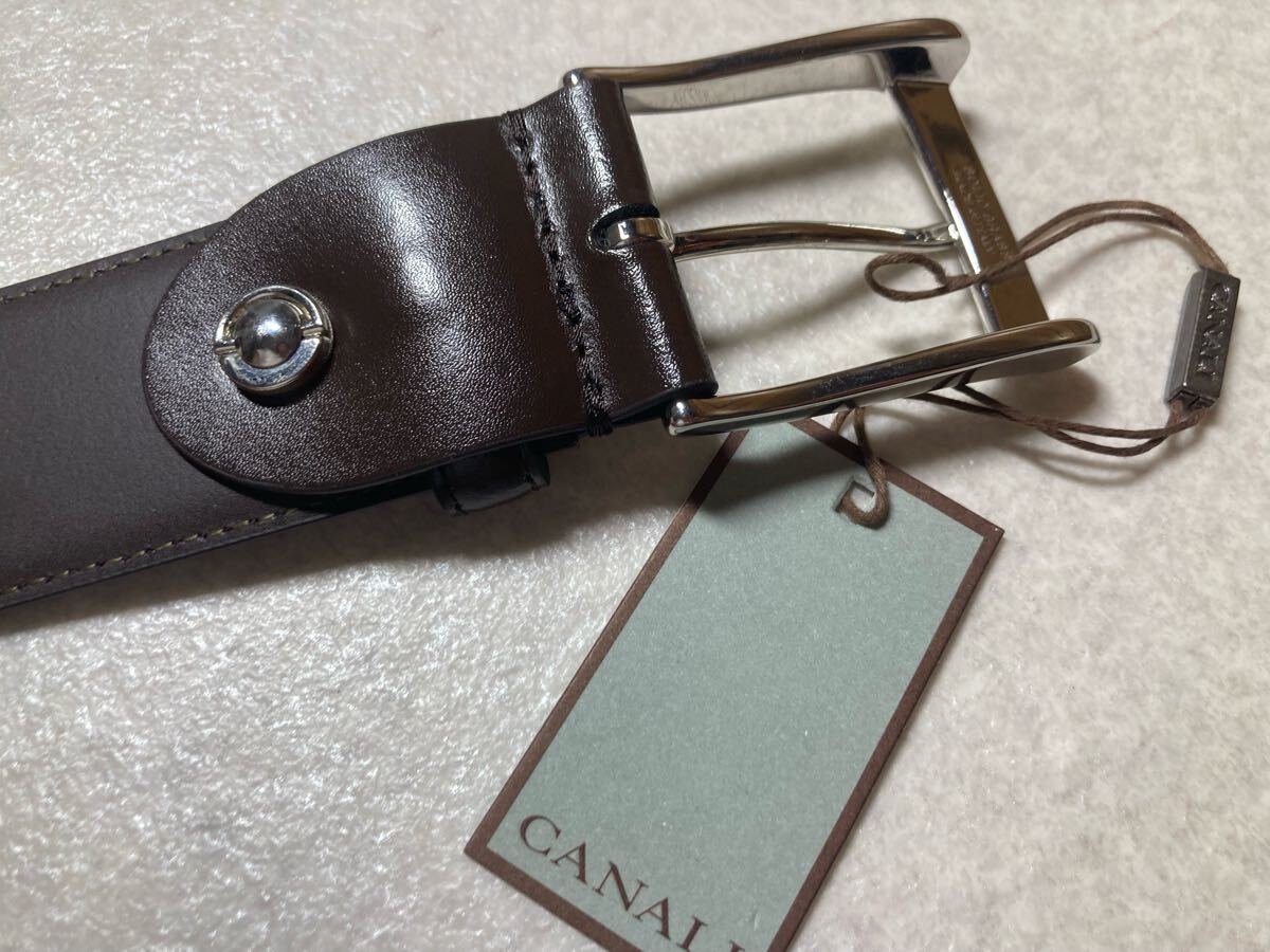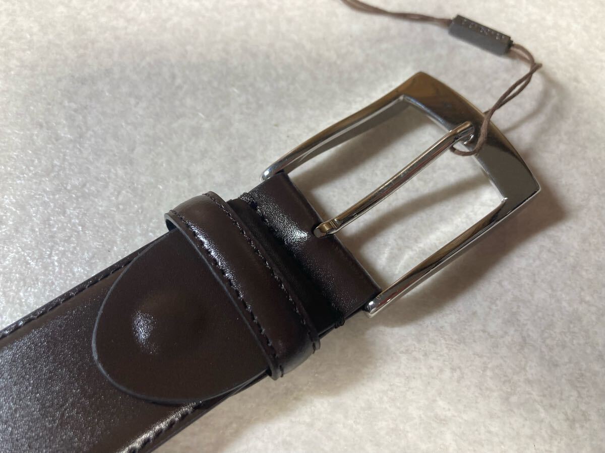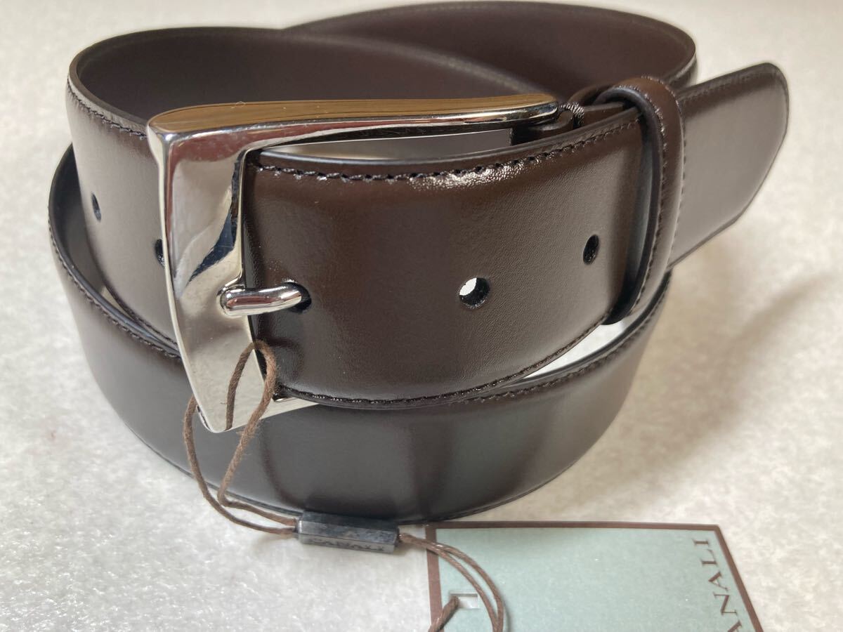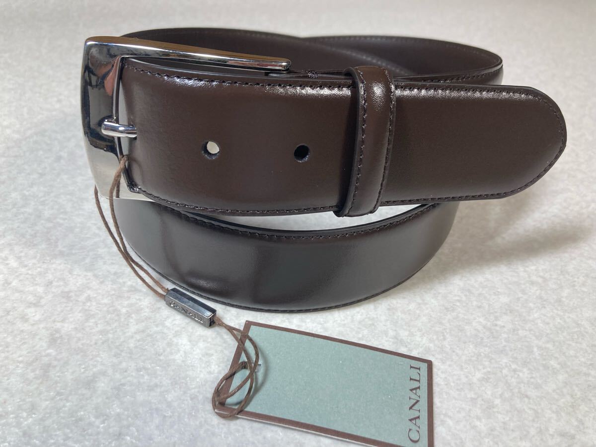 新品 カナーリ(伊) ベルト カーフレザー 幅4cm 95cm以下フリー ブラウン 定価3.8万円