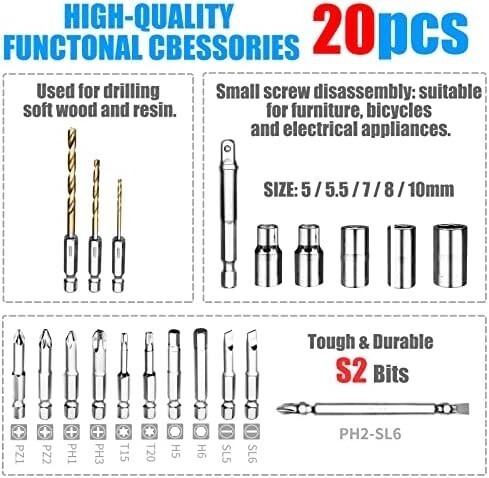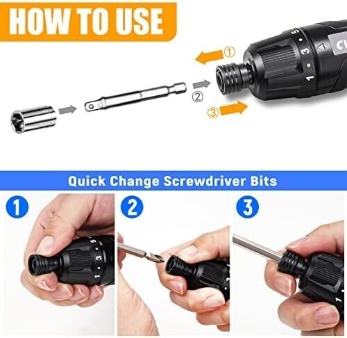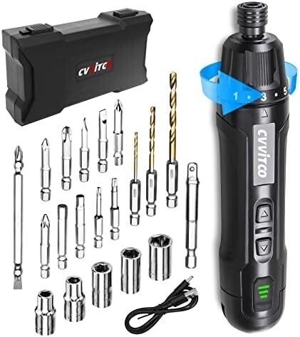 CVVITOO 電動 ドライバー 3.6VコードレスドライバーUSB Type-C充電式ドライバーキットトルク6N.m、11個のスクリュードライバービット3個のツイストドリルビット5個のソケットフレックス六角シャフトと収納ボックス