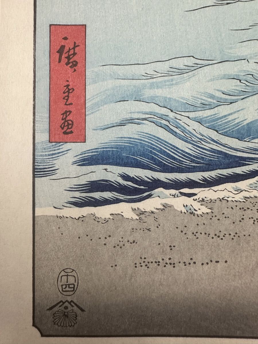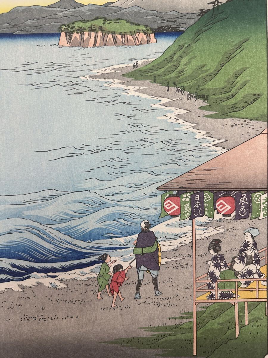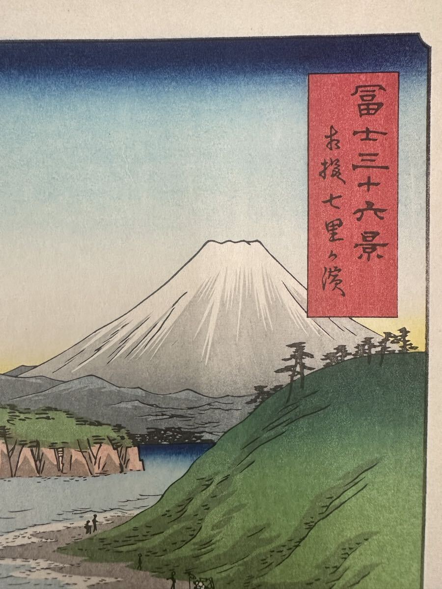 【真作】大正期 浮世絵木版画 歌川広重「冨士三十六景 相模七里か濱」名所絵 大判 錦絵 保存良い 大判