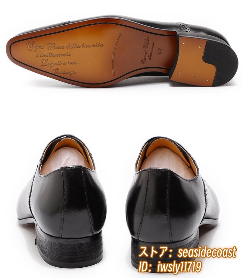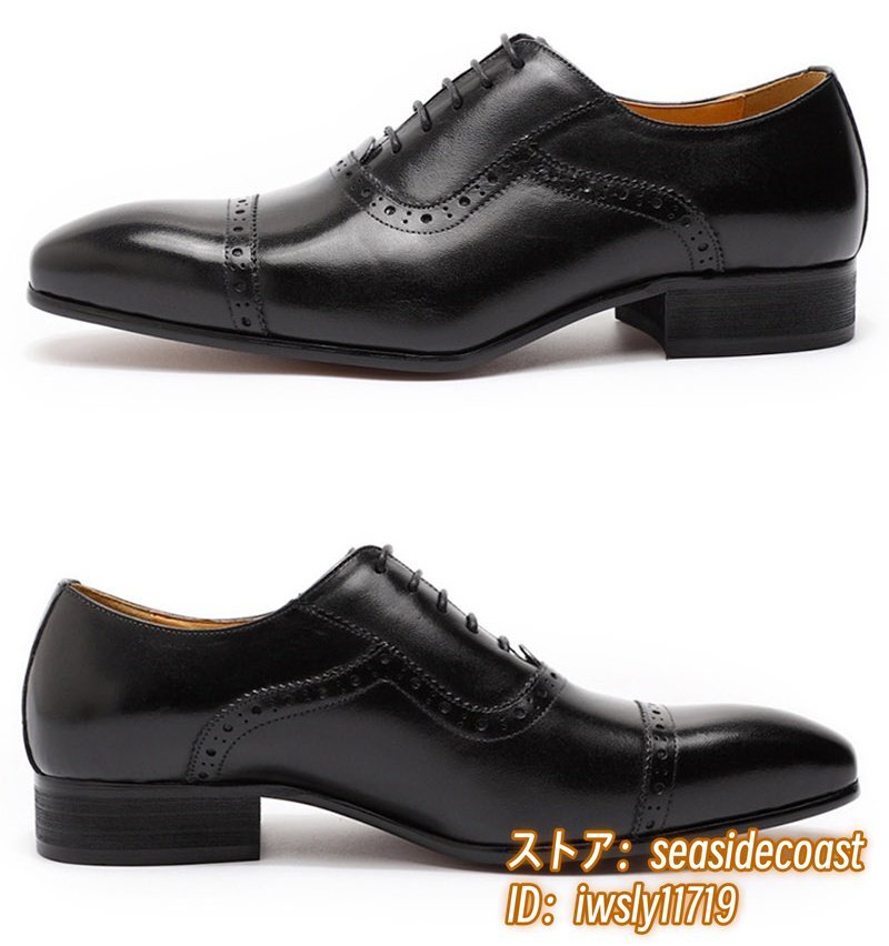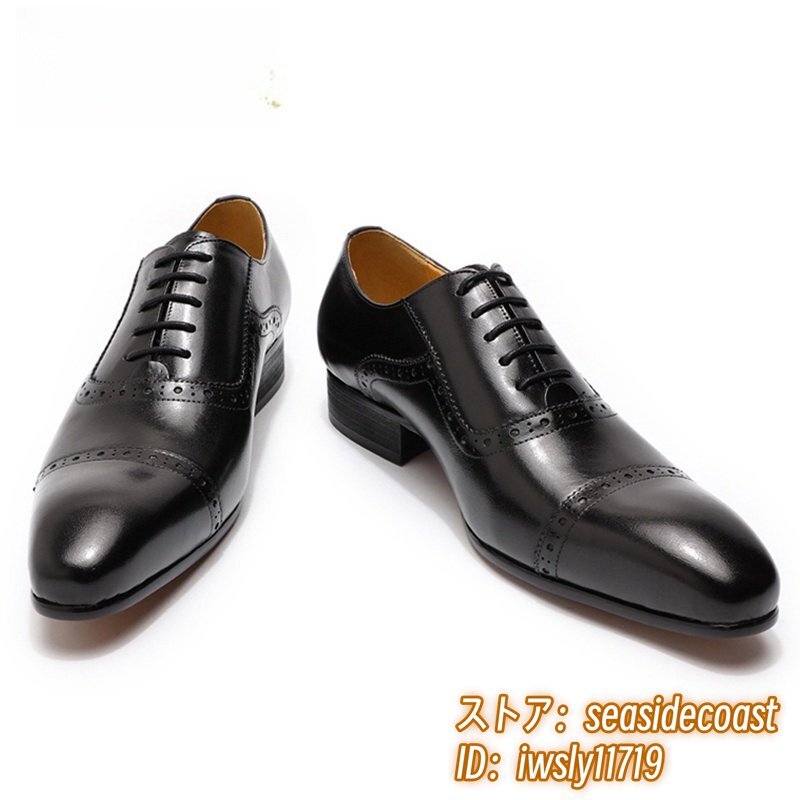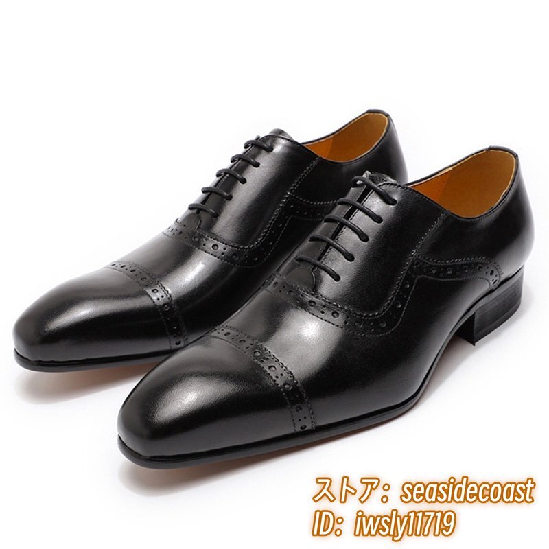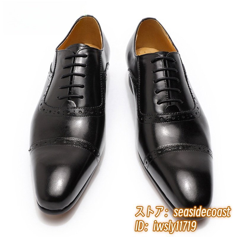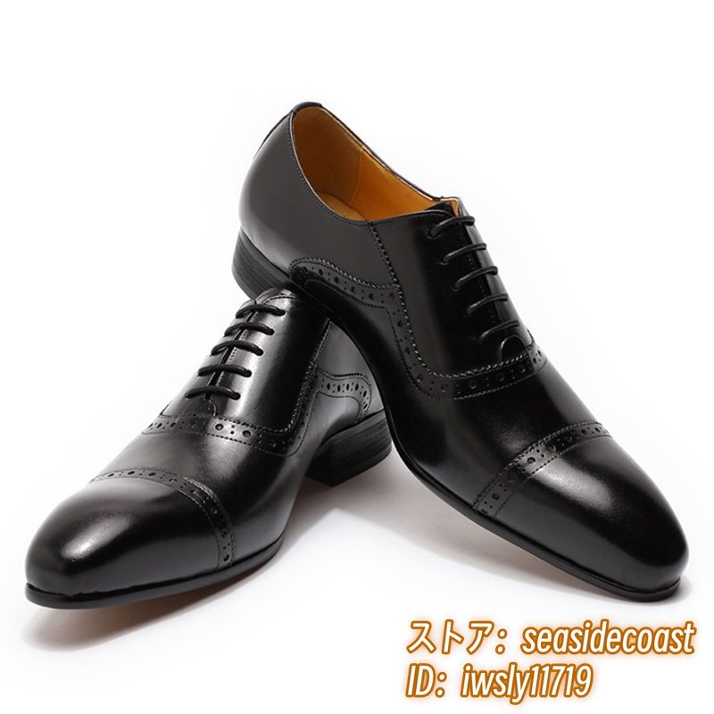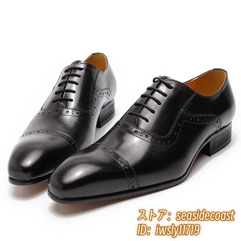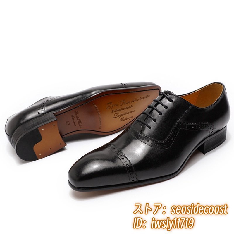 定価9万★最高級 牛革 メンズシューズ ビジネスシューズ 職人手作り 彫り 本革レザーシューズ 紳士靴 革靴 フォーマル 新品 黒 27.5cm