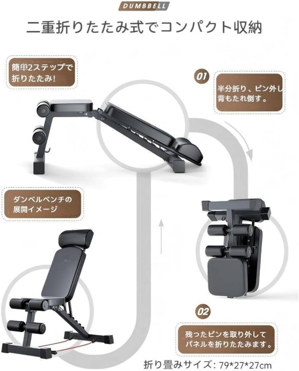 トレーニングベンチ ベンチプレス台 チインクラインベンチ 折り畳み ダンベル コンパクト 角度調整 フラット 筋トレ ベンチ 腹筋