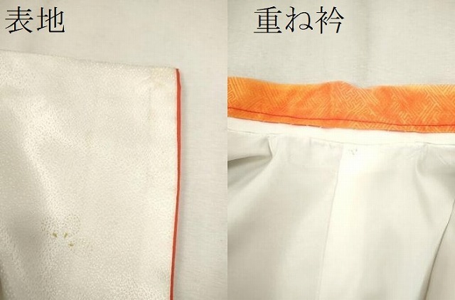 着物【化繊】の状態は接写画像のように表地所々・重ね衿に薄い汚れがございます。 長襦袢【化繊・単衣】の状態は特に目立ったシミ汚れなどもなく大変良い状態です。 大変上質な逸品になりますので ぜひお手入れをされてお召しになられてはいかがでしょうか。 お安く出品致しますので、是非この機会にいかがでしょうか? ※祝着・長襦袢の胴裏にペン書きがございます。 |