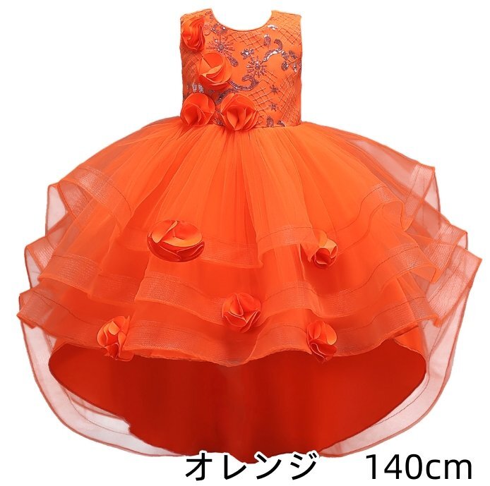 ドレス 子供 ピアノ 発表会 キッズ ドレス フォーマル ワンピース オレンジ 140cm