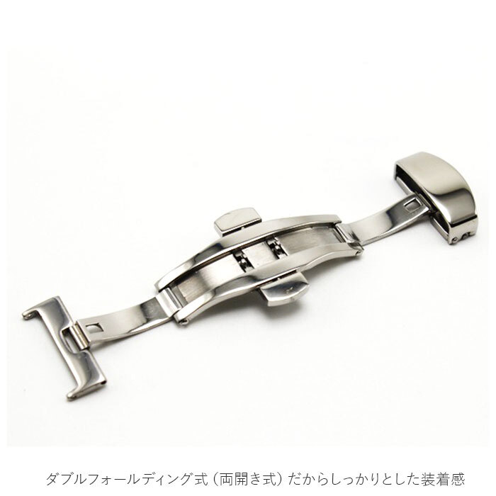 商品説明 | ・中央の上下のボタンを押すとヒンジが開くタイプで使いやすい◎腕時計のベルトに装着する「Dバックル」が発売。 ・アレルギーが出にくいステンレス素材を使用。金属アレルギーの方や肌が弱い方でも使える♪ ・ダブルフォールディング式(両開き式)だからしっかりとした装着感。 ・お手持ちの時計ベルトの尾錠部分の穴に付属のピンを入れ、片方のバックル穴にピンをさし、お手持ちの工具や指でピンを押し、もう片方のバックル穴に固定。逆側のバックルをベルト穴に合わせる仕様。 ・バックルの金具部分が壊れても自宅で付け替えが可能なのがうれしいポイント。 ・尾錠幅10mm、12mm、14mm、16mm、18mm、20mm、22mmと豊富なサイズ展開! |