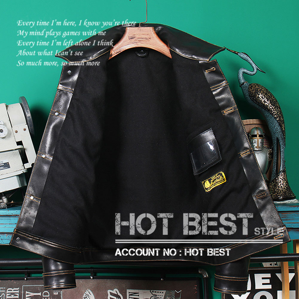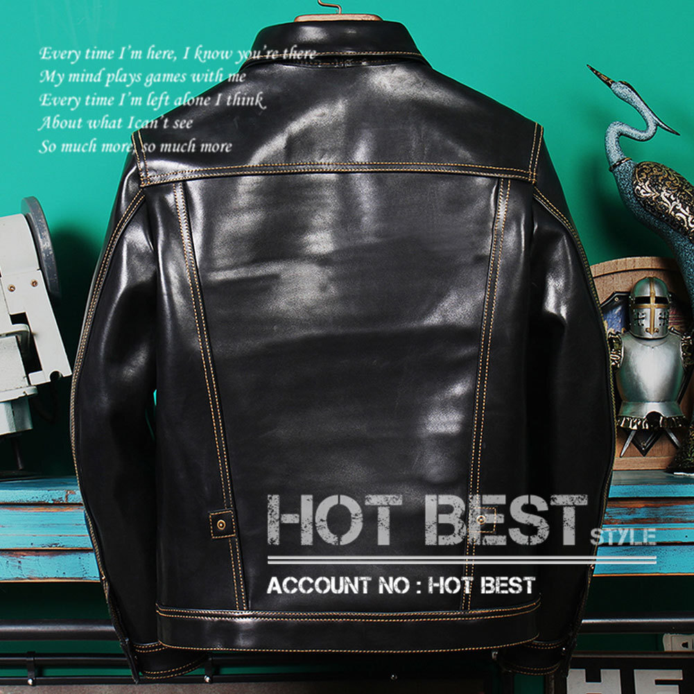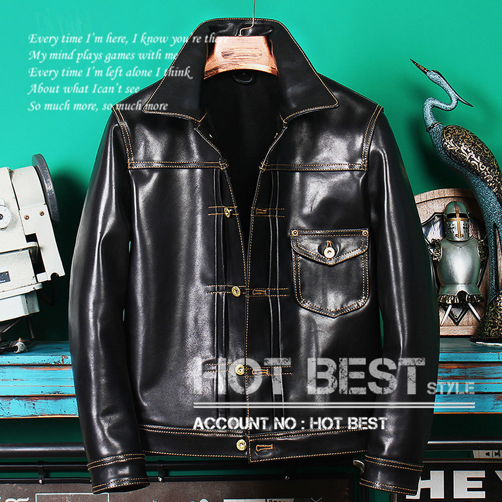 1.3mm 黒芯ホースハイド カウボーイタイプ Gジャン 506 1st ライダース レザージャケット タンニンなめし 馬革【XL】HBY585