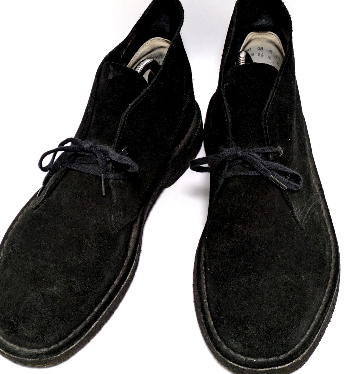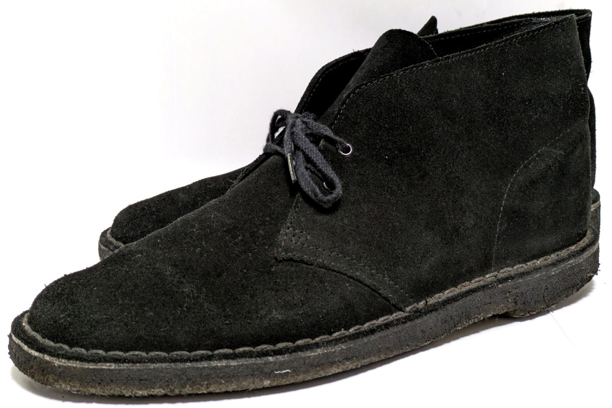 [良品] Clarks us10 28cm 本革 スエード デザートブーツ クレープソール ブラック プレーントゥ フォーマル 紳士靴 クラークス