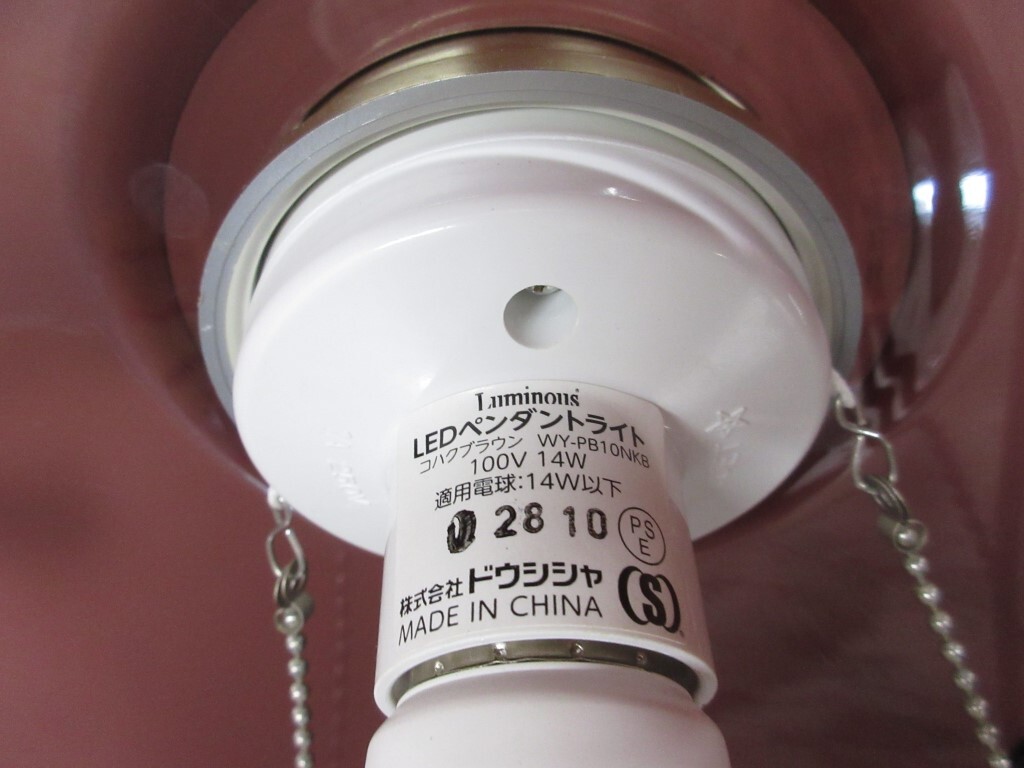 09Y015 【 中古・稼働品 】 ドウシシャ Luminous LEDペンダントライト コハクブラウン 品番:WY-PB10NKB 現状渡し