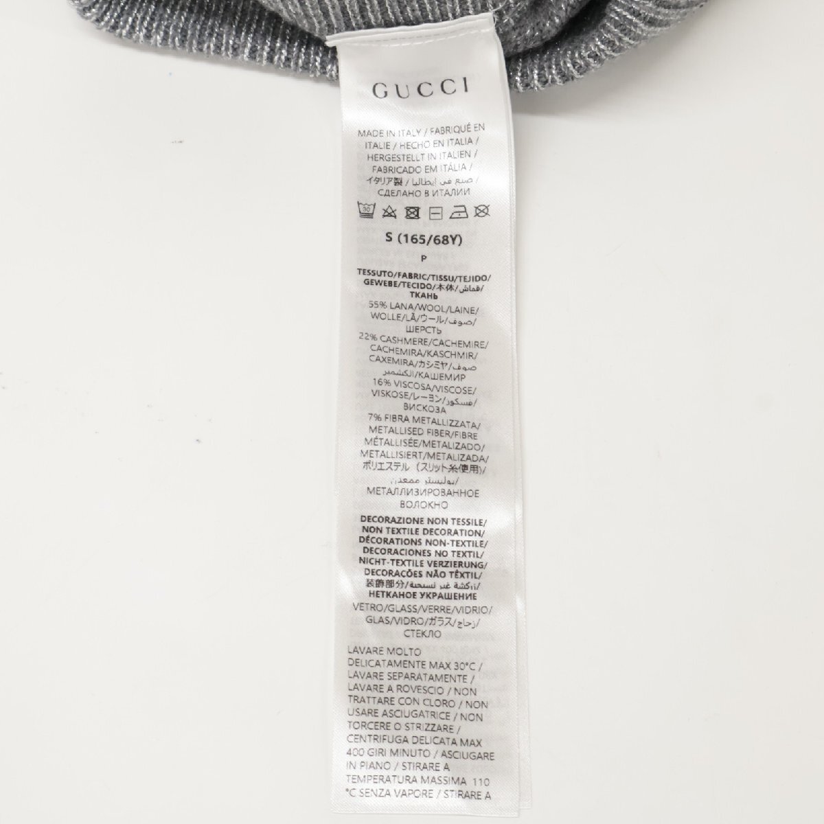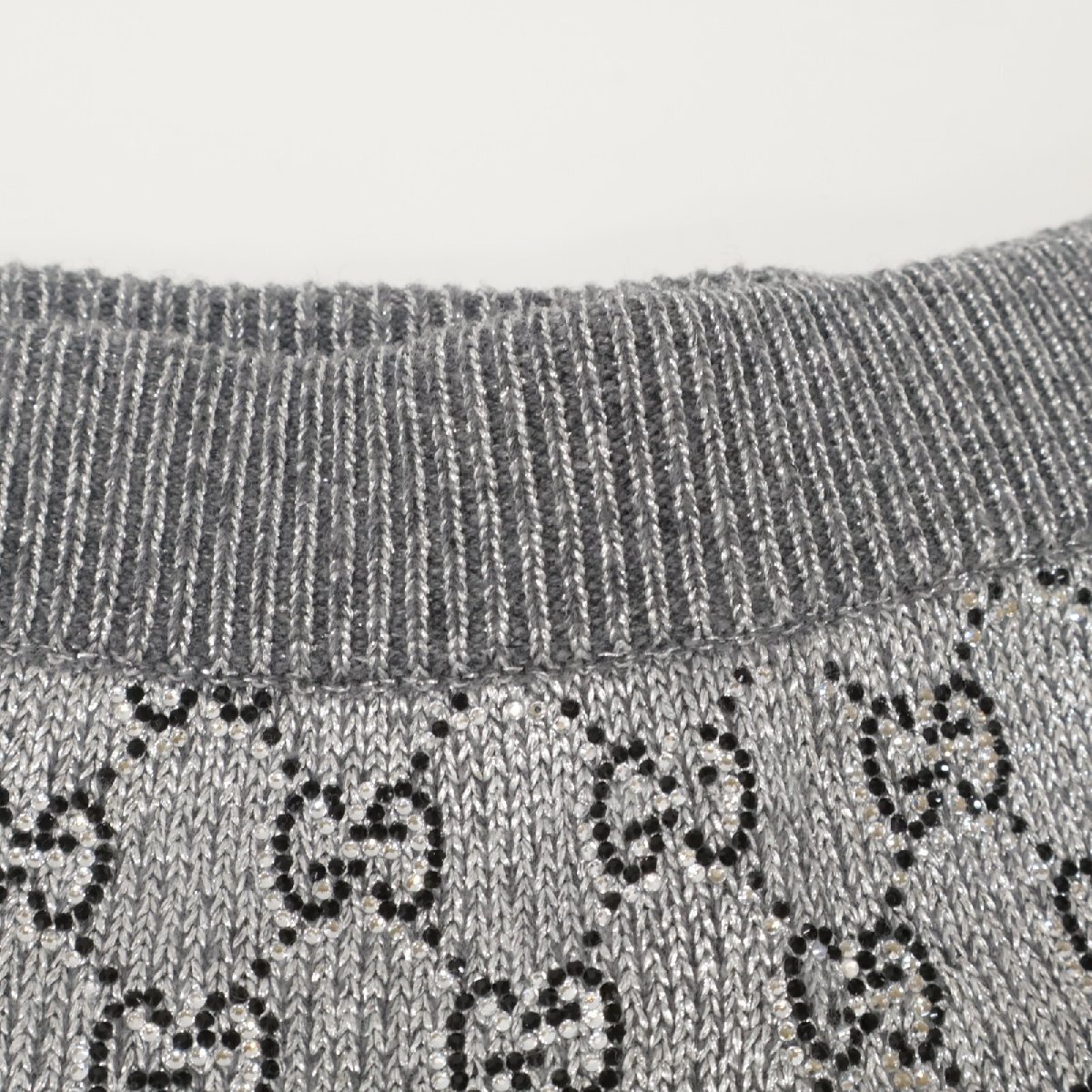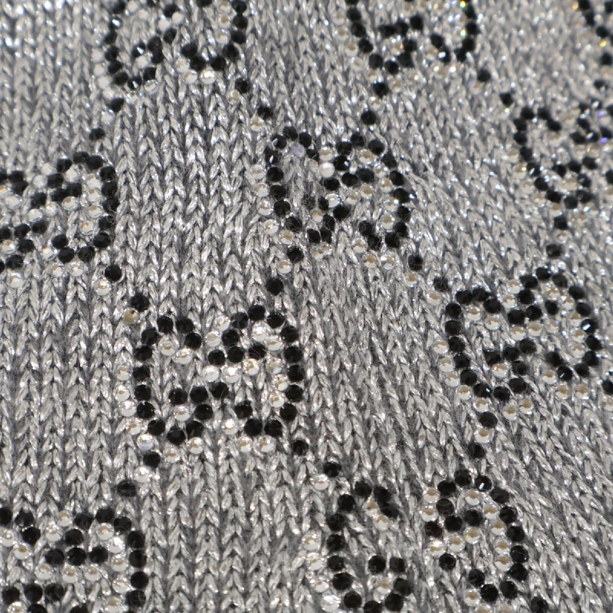 新品同様 国内正規 GUCCI グッチ 813719 25年 ラインストーンGG エンブロイダリー ウール&カシミア ニットパンツ S シルバー レディース