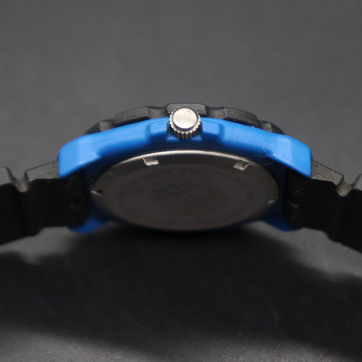 平置きで24時間動作確認済み、遅れなく稼働中です。 電池は新品に交換しております。 ベゼル、固着しております。 予めご了承の上ご入札お願い致します。 リューズを一段引きで日付早送り、二段引きで時刻調整が可能です。 全体に経年使用によるキズ・打痕・小汚れ、 ガラスにわずかな小キズ見受けられますが、 文字盤は目視で傷みなく、きれいです。 視認性は問題なく、良好です。 針の夜光に劣化ございますが、インデックス、 ルミナスポイントの夜光は光ります。 ベゼル、印字薄れはございません。 純正リューズ、旧ロゴ付き、良好です。 裏蓋刻印、鮮明です。 純正ラバーベルト、使用感ございますが、大きな傷みなく 通常使用に問題ございません。 状態について、詳しくは画像にてご判断願います。 |