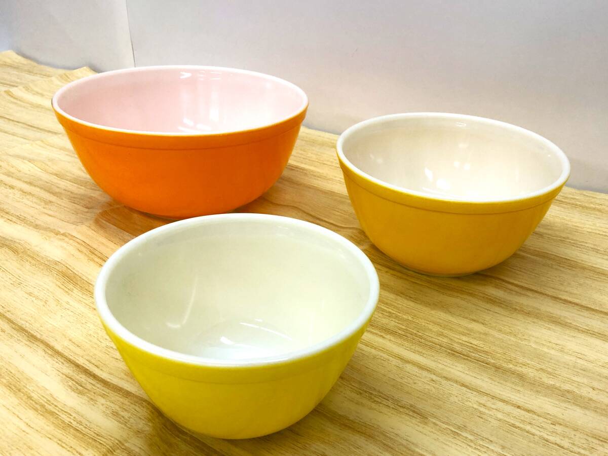 昭和レトロ PYREX パイレックス ミルクガラス ミキシングボウル ボウル 大・中・小 3個セット レトロポップ インテリア 生活雑貨 |