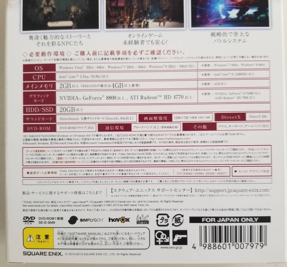 PCゲーム for Windows ファイナルファンタジーXIV FINALFANTASY XIV オンライン専用 新生エオルゼア A REALM REBORN SQUARE ENIX 未使用品 | ||||||||