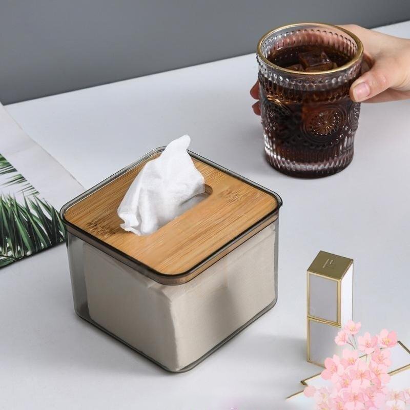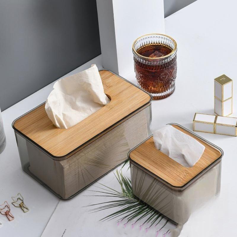 ティッシュケース 北欧 木製 透明 ティッシュカバー 車 竹+PET シンプル デザイン リビング 洗面所 寝室 軽量 縦型 ティッシュ shw0095.2
