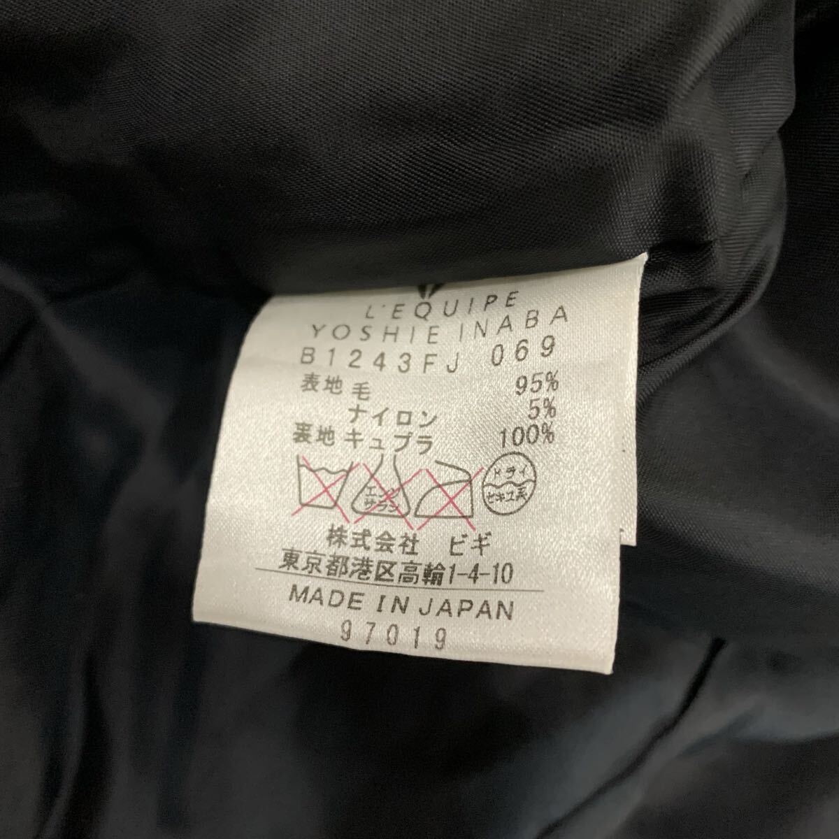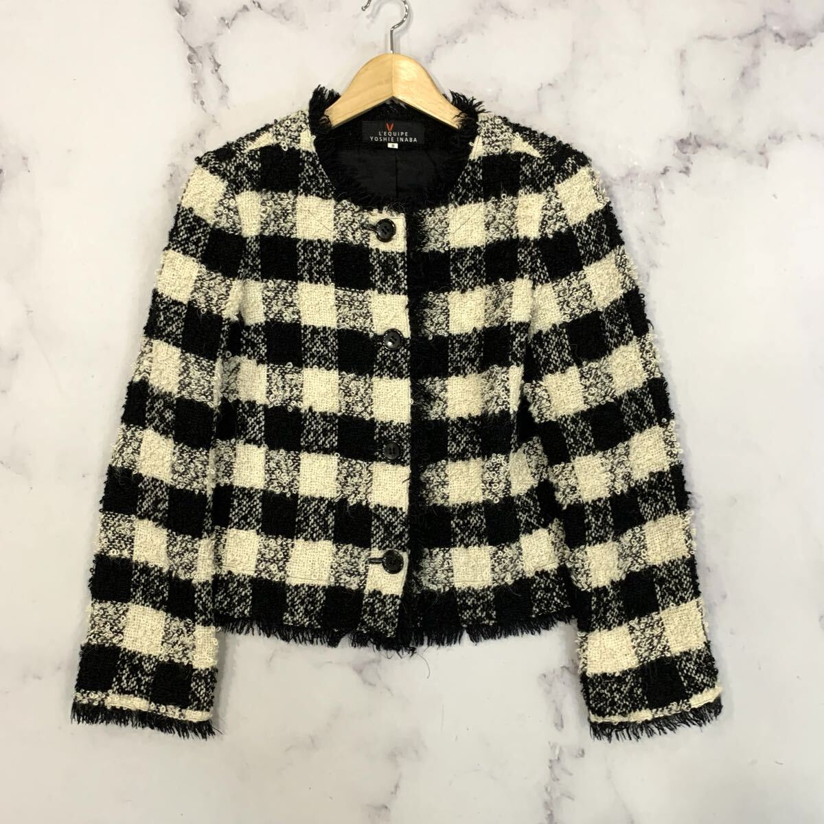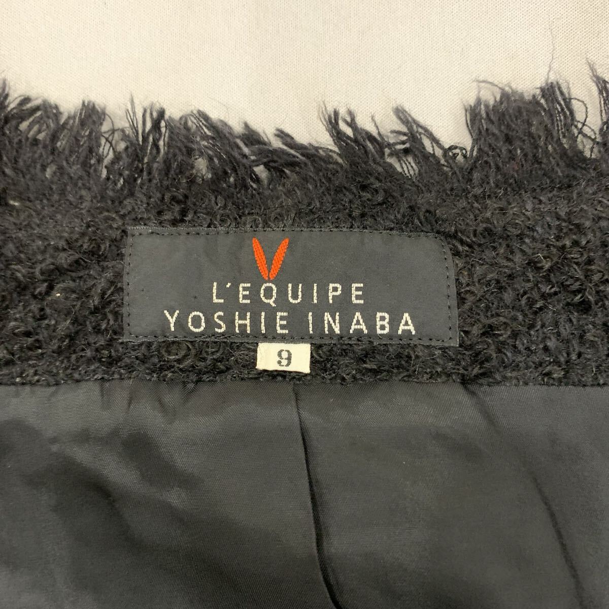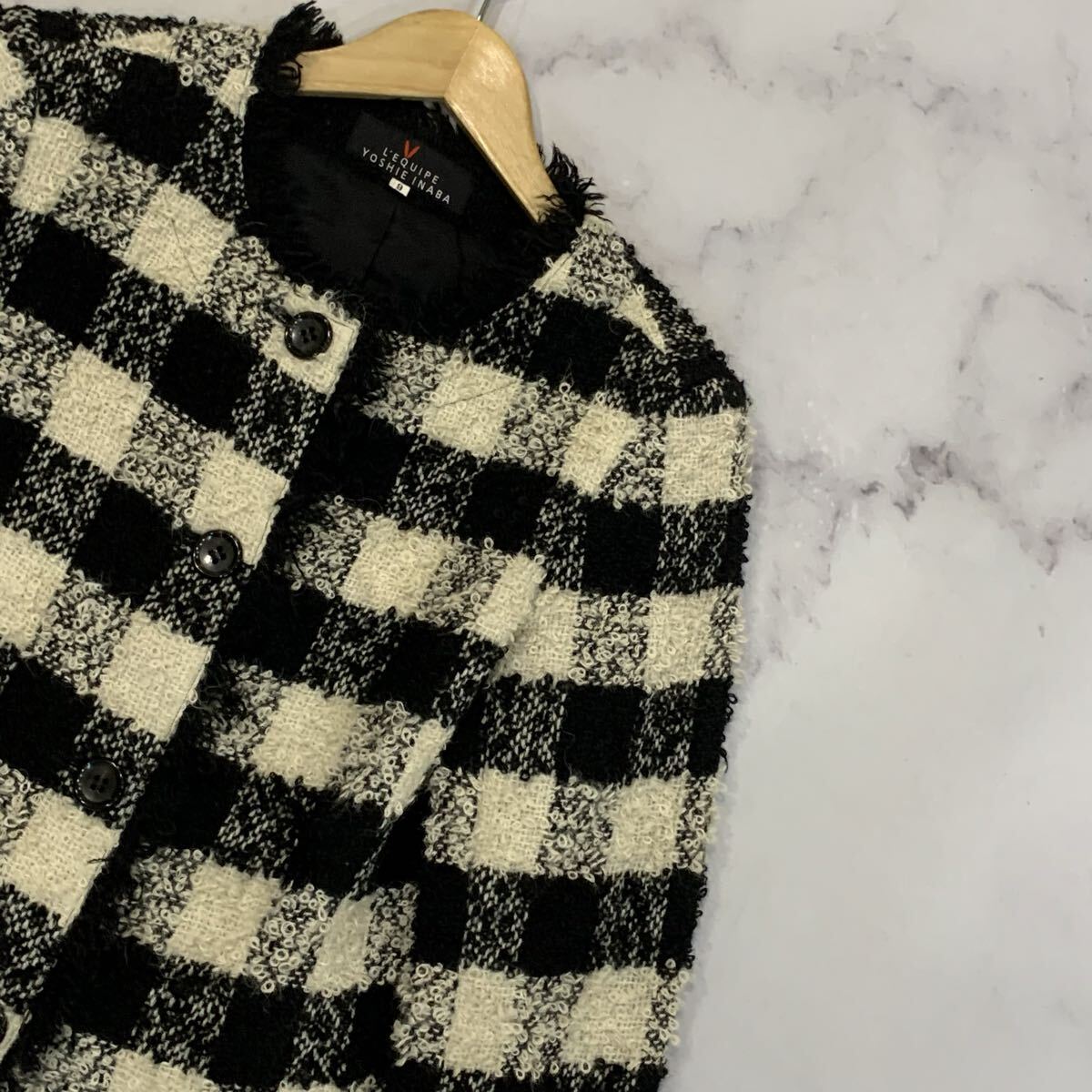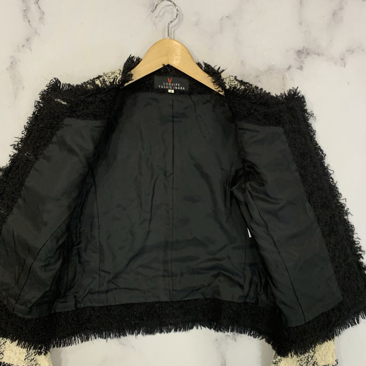 AL▼洗練されたデザイン!! '日本製' L'EQUIPE YOSHIE INABA レキップヨシエイナバ チェック柄 ノーカラージャケット 9 レディース アウター
