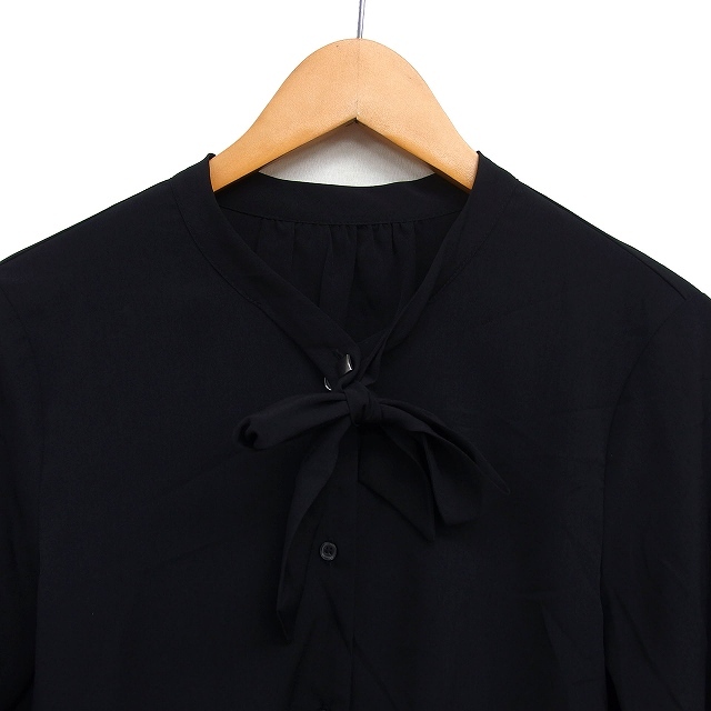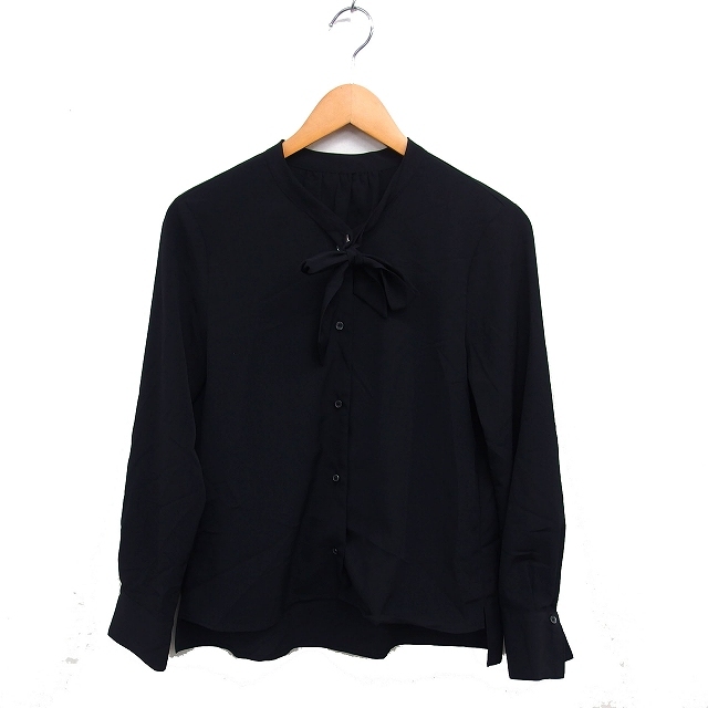 コムサイズム COMME CA ISM ボウタイ シャツ ブラウス ギャザー スリット 透け感 長袖 9 黒 ブラック /NT31 レディース
