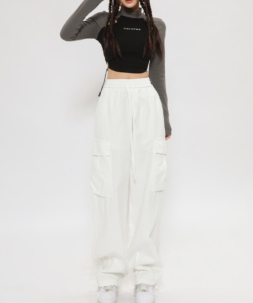 キーワード:カーゴパンツ レディース ハイウエスト フルレングス ワイドパンツ