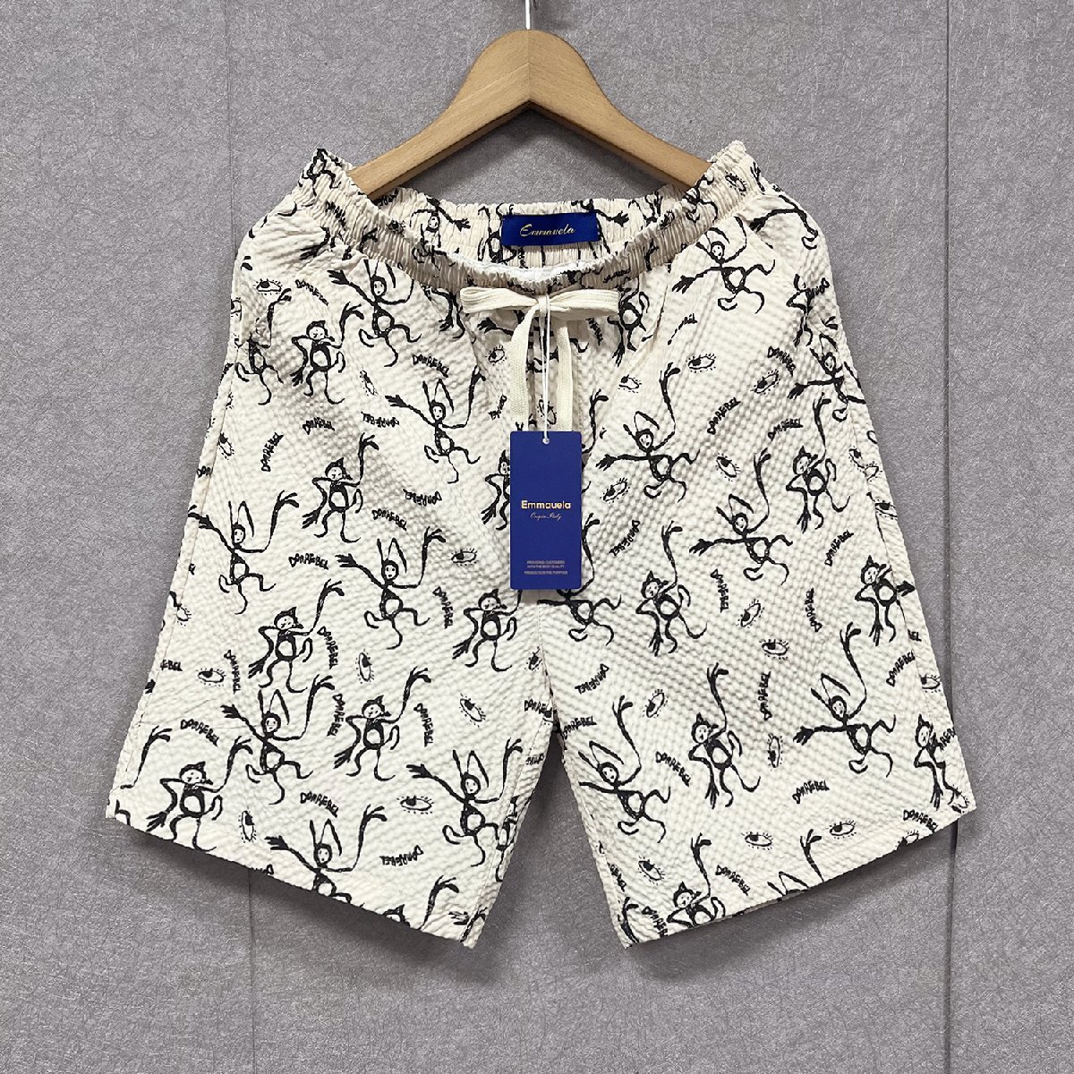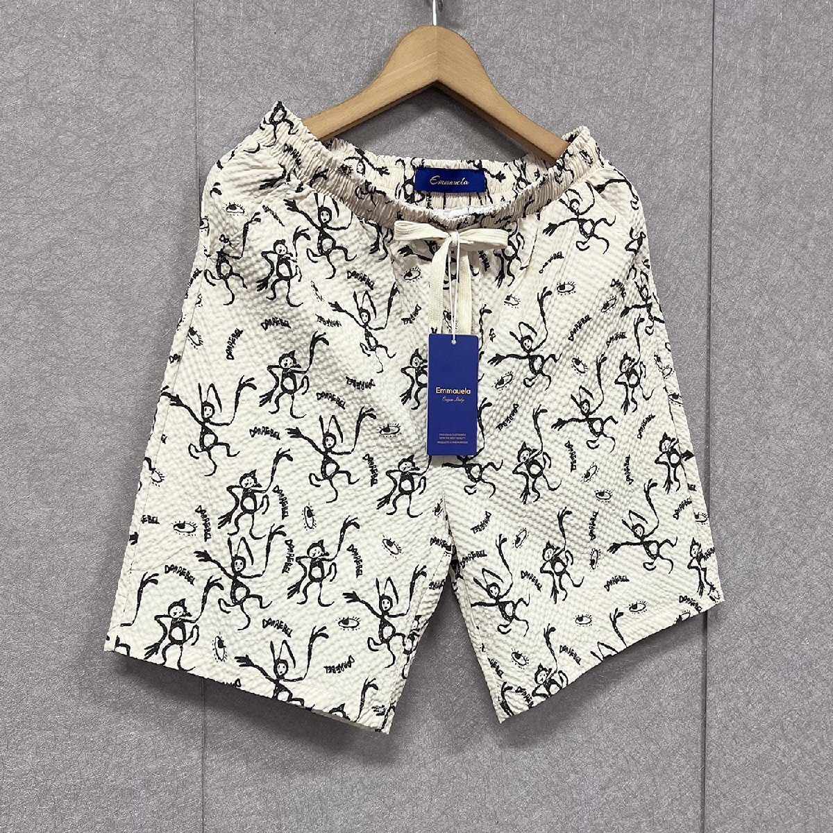 高級・ショートパンツ 定価3万◆Emmauela・イタリア・ミラノ発◆上質 速乾 総柄 ハーフパンツ 短パン 個性 遊び心 ストリート 普段着 L/48