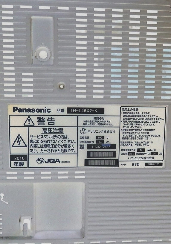 | Panasonic 26V型 液晶テレビ VIERA TH-L26X2-K リモコン+B-CAS付 | ||