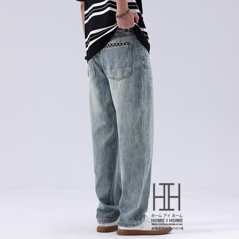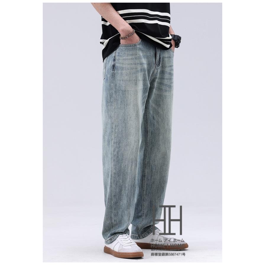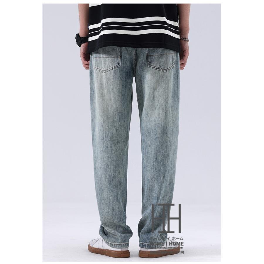 デニムパンツ メンズジーンズ ジーンズ メンズ ストレート 大きいサイズ ワンポイント ユーズド加工 ウォッシュ加工 メンズパンツ パンツメンズ ズボン ジーパン