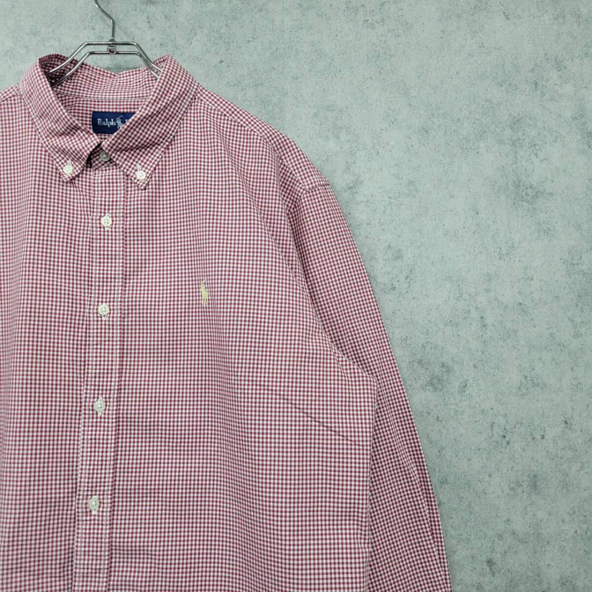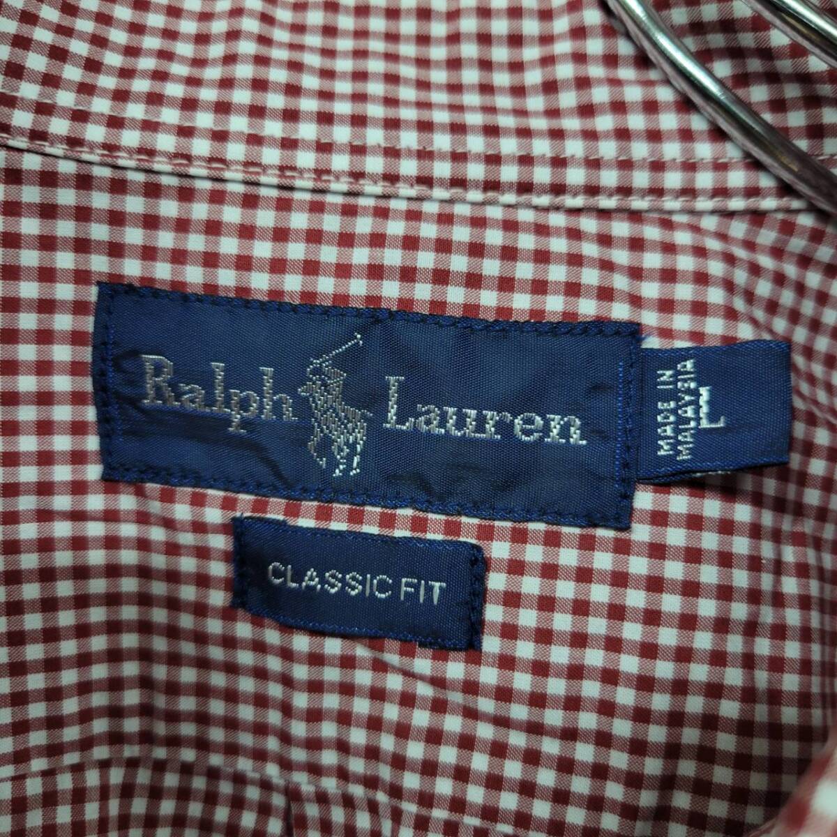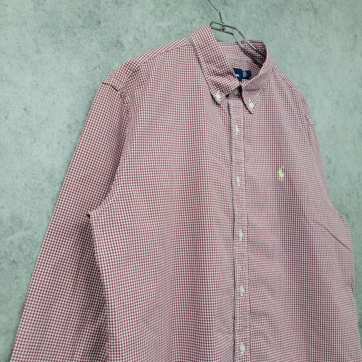 90s ポロ ラルフローレン ギンガムチェック 刺繍 シャツ レッド L 古着