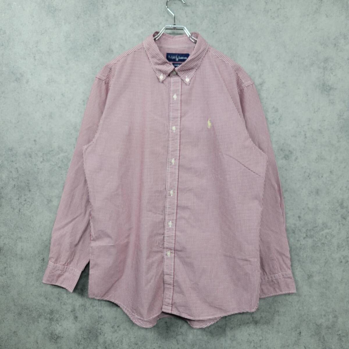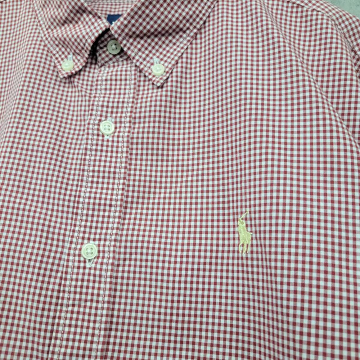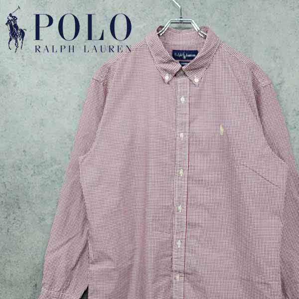 90s ポロ ラルフローレン ギンガムチェック 刺繍 シャツ レッド L 古着
