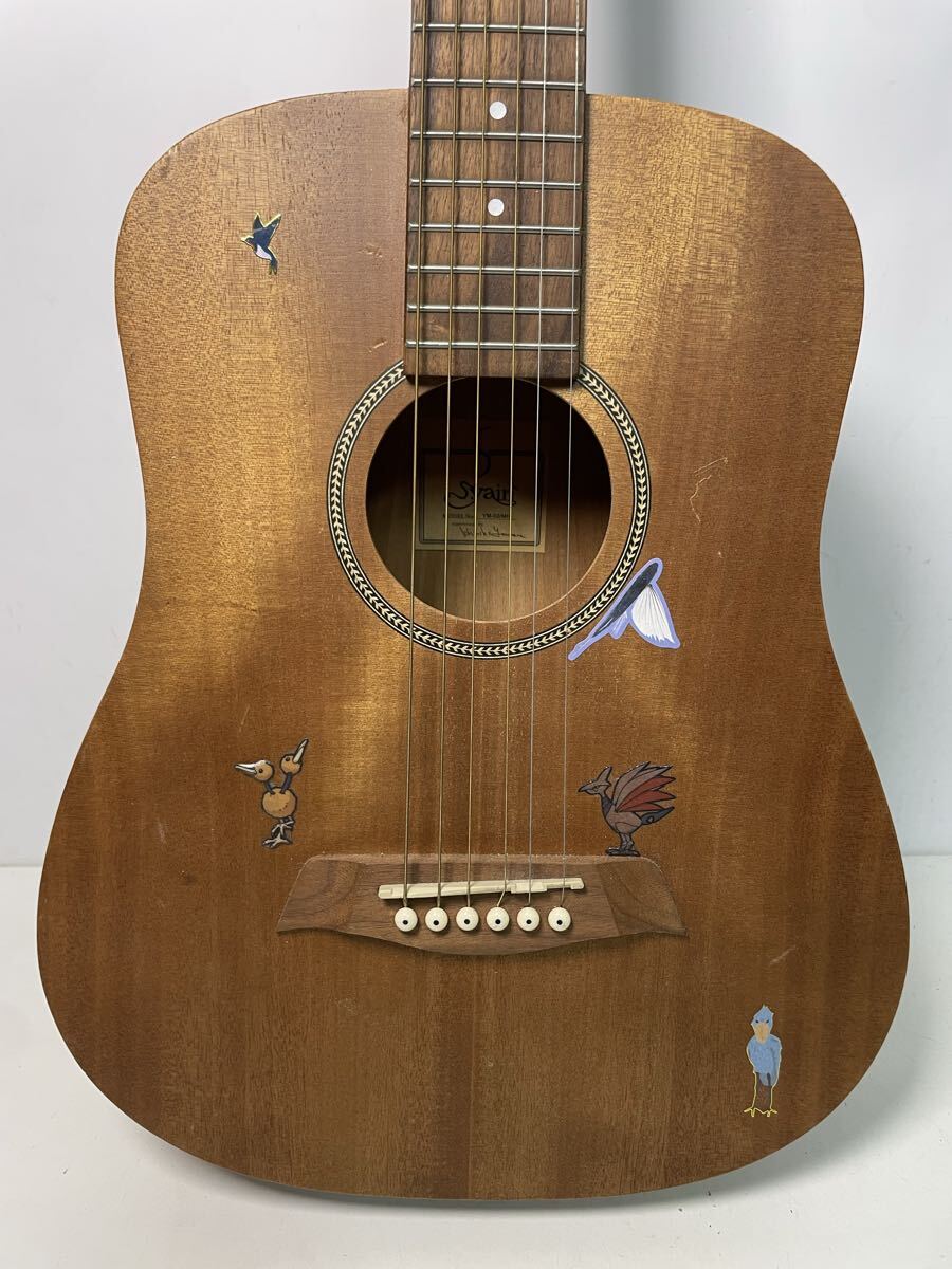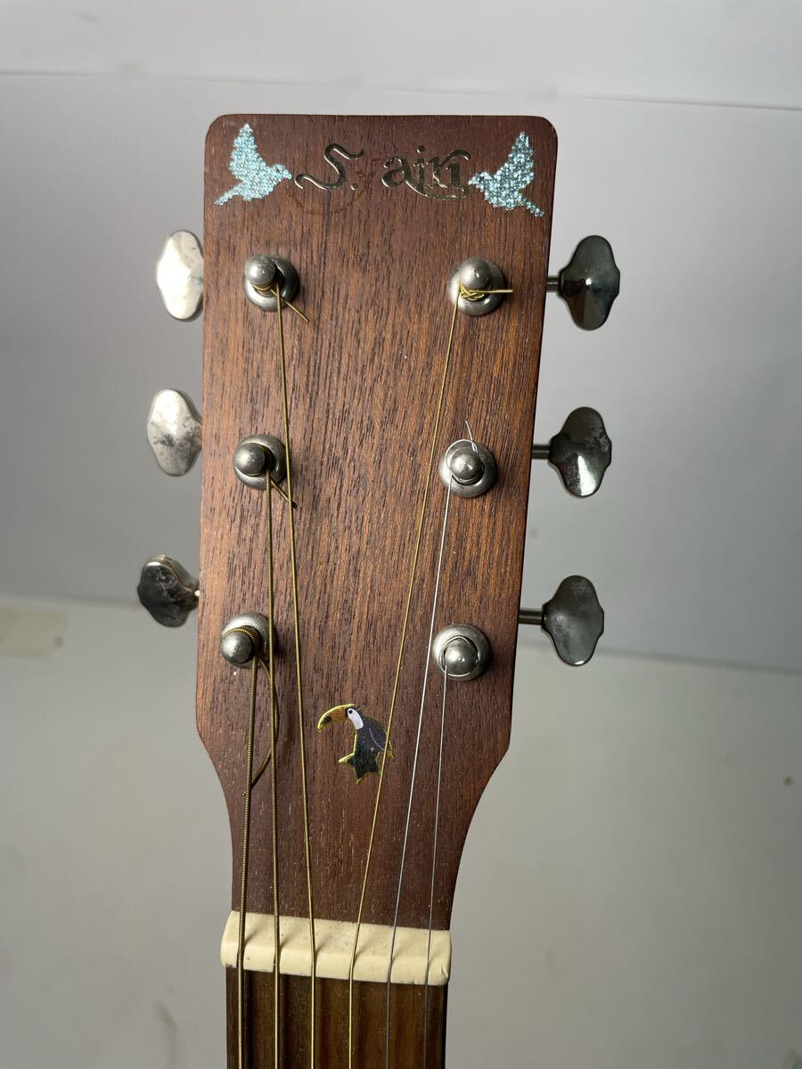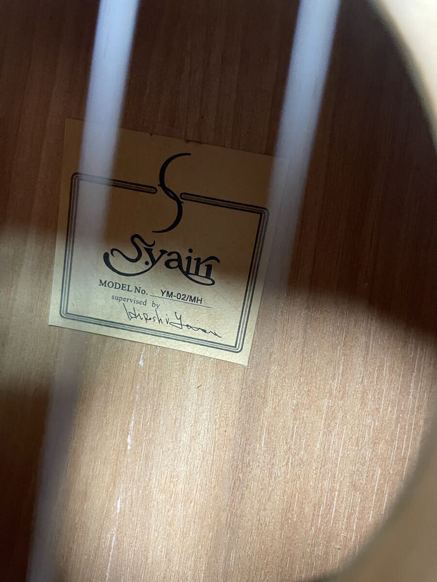 Syair(シャイアー) YM-02/MH モデルのアコースティックギター(ミニサイズ)です。内部ラベルには “supervised by Hitoshi Yonei” の記載があります。