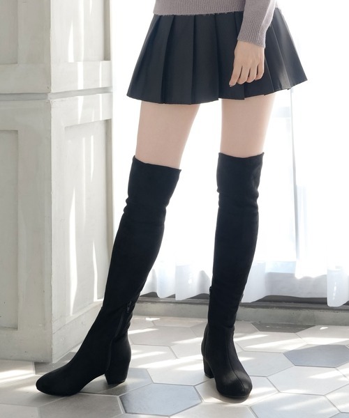 キーワード:ブーツ レディース チャンキーヒール ニーハイ ヒール 秋 冬