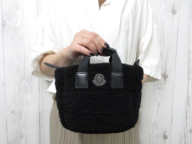 | 極美品 MONCLER モンクレール ハンドバッグ バッグ ボア×レザー 黒 90098Y | ||