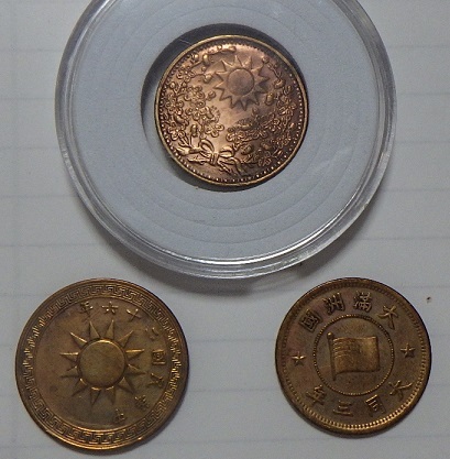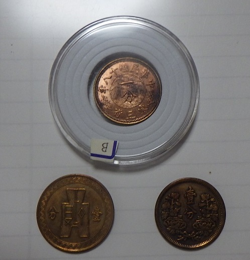 一分銅貨3種 (中華民国18年、大同3年、大同26年)
