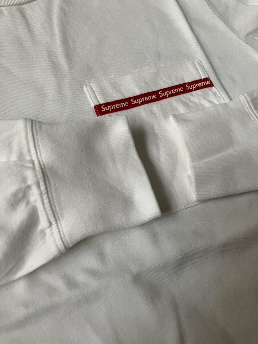 送料無料です!シュプリームのウーヴンテープロングスリーブポケットTになります。こちらはかなりレアな2016ssの商品です。国内店舗購入確実正規品/カラーはホワイト/サイズはSサイズになります。サイズチャートはオフィシャル数値です。実物との僅かな誤差はご了承ください。生地感は定番のスモールボックスに近く、それよりやや厚くした感じです。袖口はリブ仕様になります。購入後1度のみ着用し、ネットに入れて1回洗濯しました。汚れやダメージはなく主観では極美品ですが、保存期間が長いので念のため状態は画像で判断してください。決済後、ヤマト宅急便コンパクトにて送料無料で発送いたします。コンパクトに梱包しますので折りシワはご了承ください。再度のお願いですが、落札後のキャンセルは受け付けられないことに同意できる方のみ入札してください。NC/NRでお願いいたします。他にもシュプリームの商品を出品しておりますので是非ご覧ください。