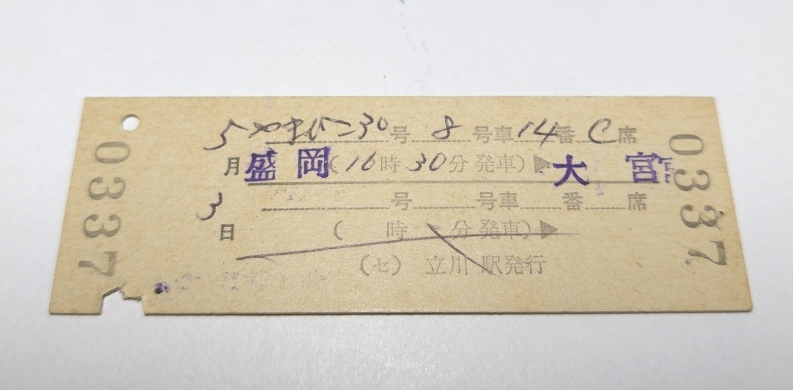 (54)国鉄 常備 新幹線指定席特急券 (セ)立川駅発行