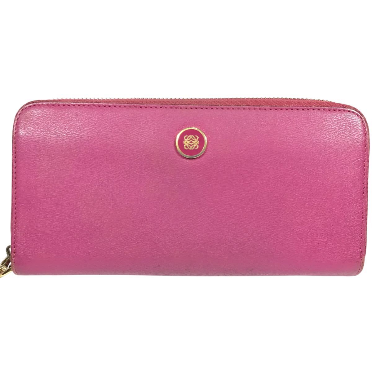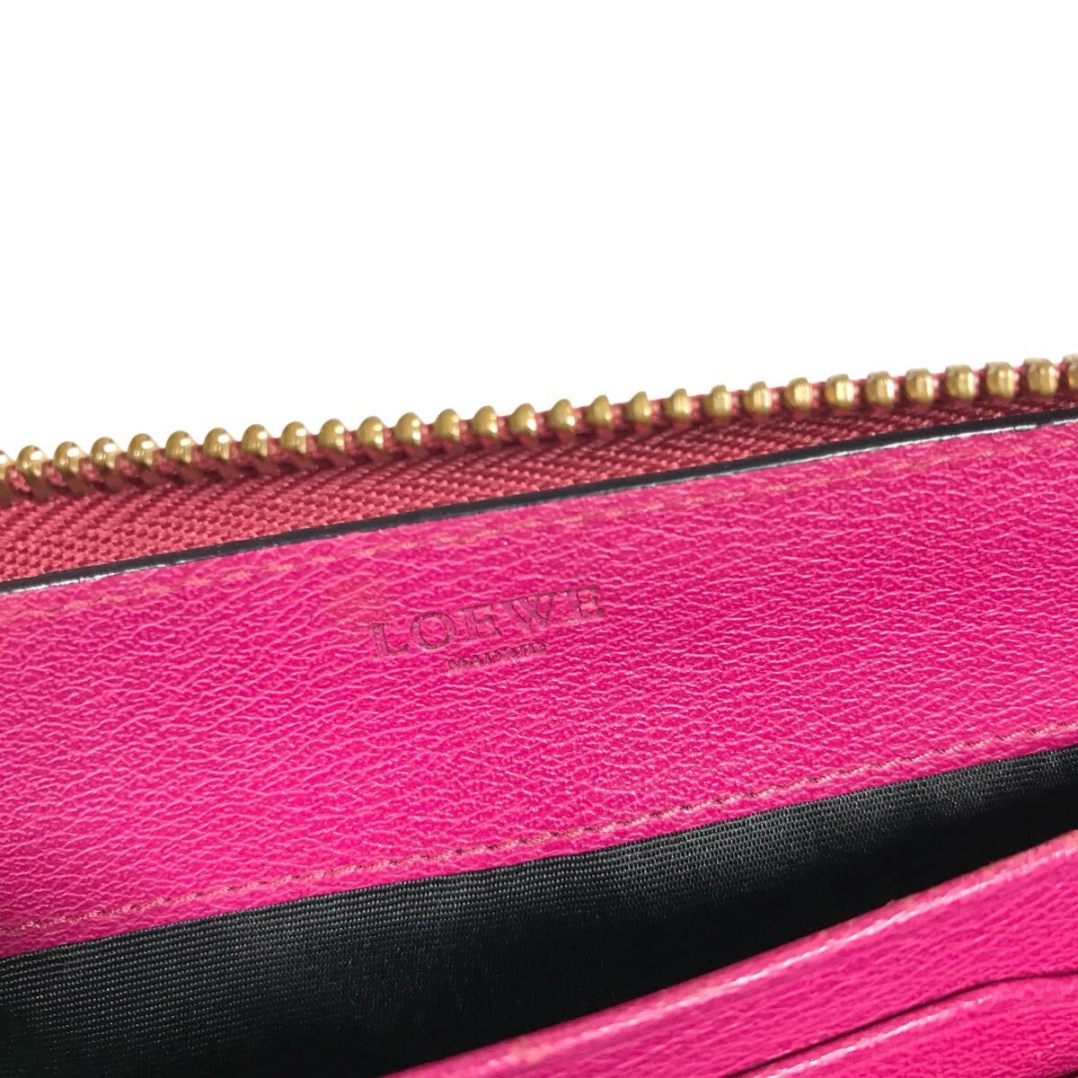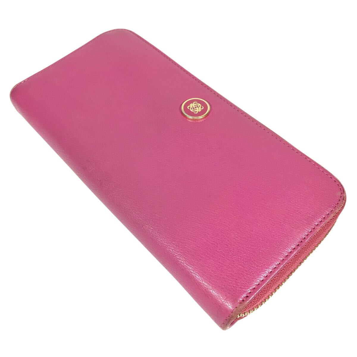 【ロエベ】本物 LOEWE 長財布 アナグラム ラウンドファスナー 小銭入れ有り ピンク色系 本革 レザー 女性用 レディース