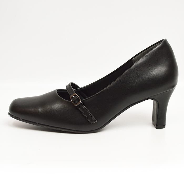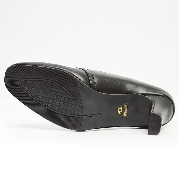 パンプス レディース 6.5cm ヒール 高め 幅広 3E スクエアトゥ ストラップ 通勤 オフィス ブラック【エコ配送】 87145