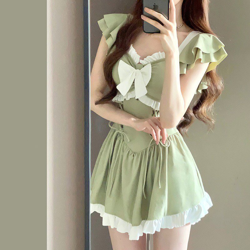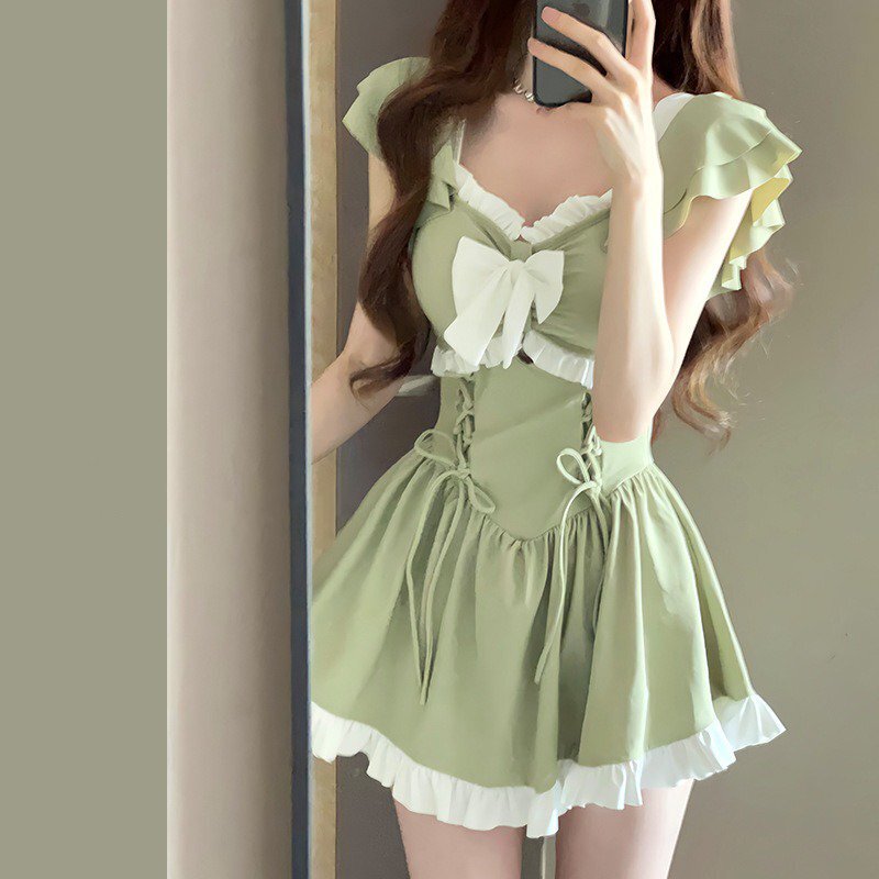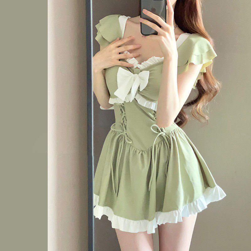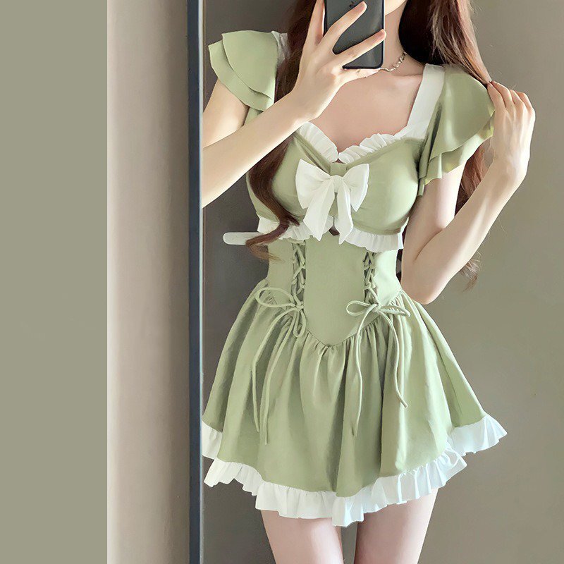 大人可愛い スクール水メイト ワンピース水着 レディース レオタード 海 コスプレ 温泉 プール コスプレ衣装 L グリーン