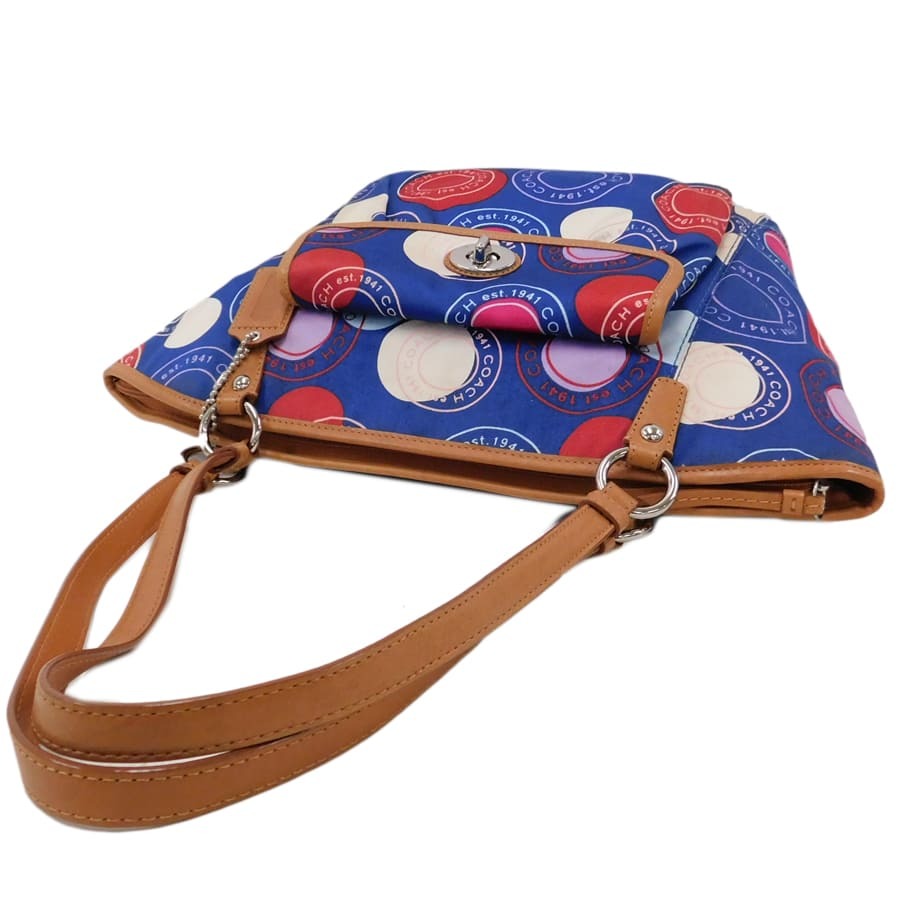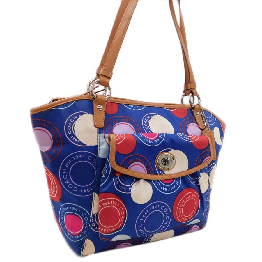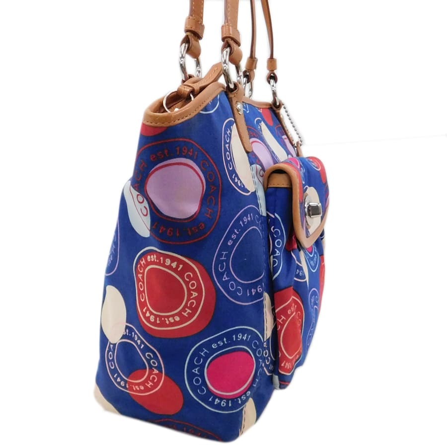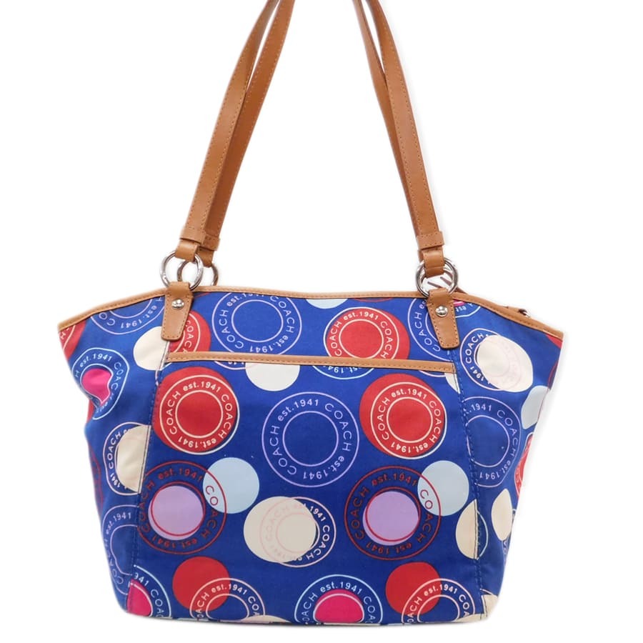 1円■ 極美品/コーチ/トートバッグ/F14667/マルチカラー系/キャンバス×レザー/水玉/普段使い/COACH ■E.Big.pS-18[中古]