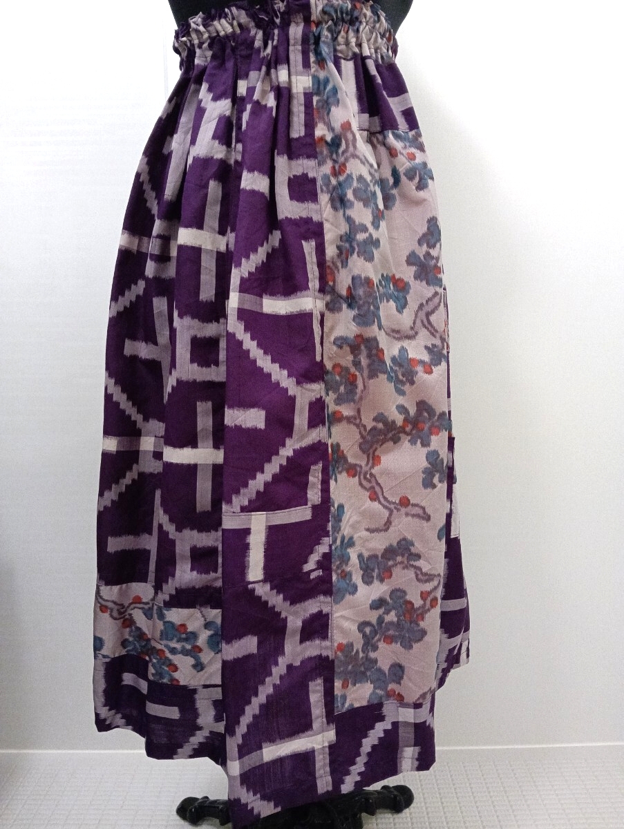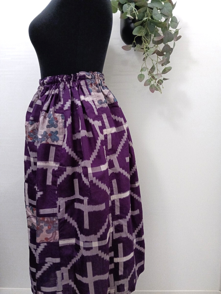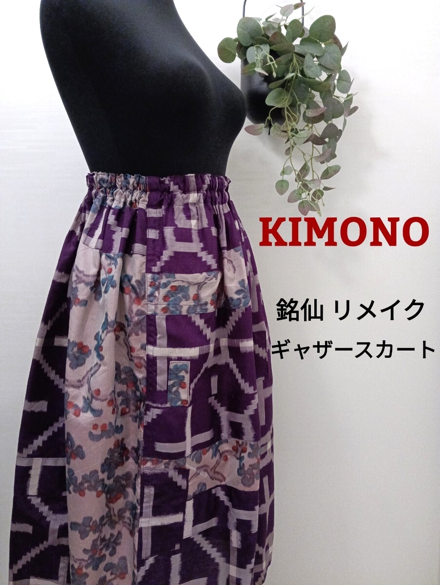 着物「銘仙」をリメイクしたハンドメイドのスカートです♪♪
