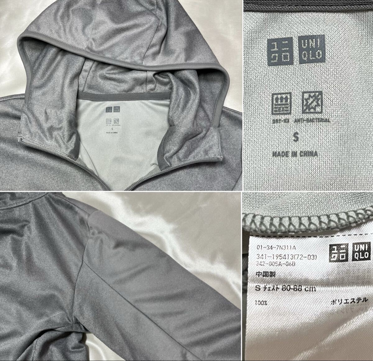 ユニクロ UNIQLOドライEXフルジップパーカー フーディー グレー S