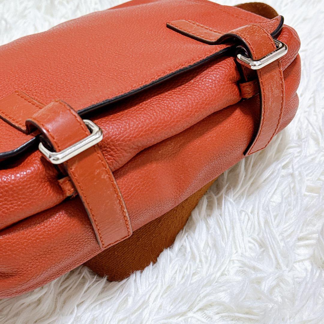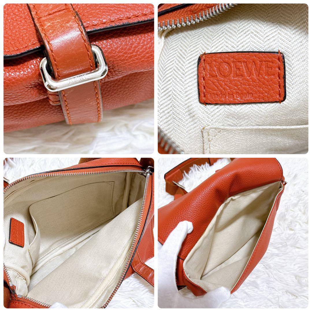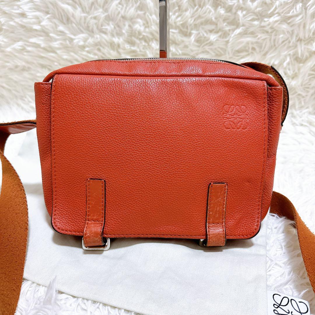 LOEWE ロエベ ミリタリーメッセンジャーバッグ ショルダーバッグ クロスボディ 斜め掛け レザー 本革 ブラウン オレンジ 保存袋付き 正規品 ユニセックス メンズ レディース