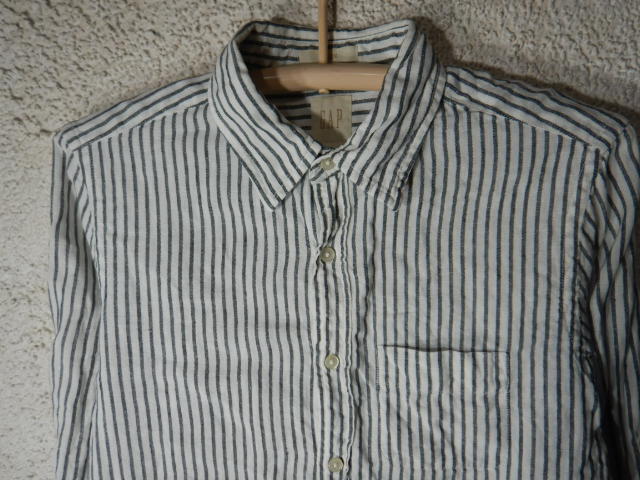 to8105 GAP ギャップ 長袖 リネン 麻 100% ストライプ デザイン シャツ 人気 送料格安