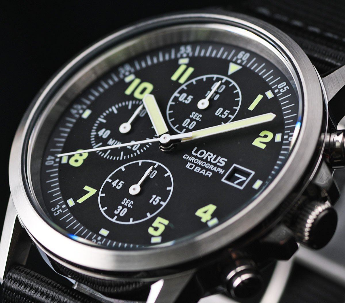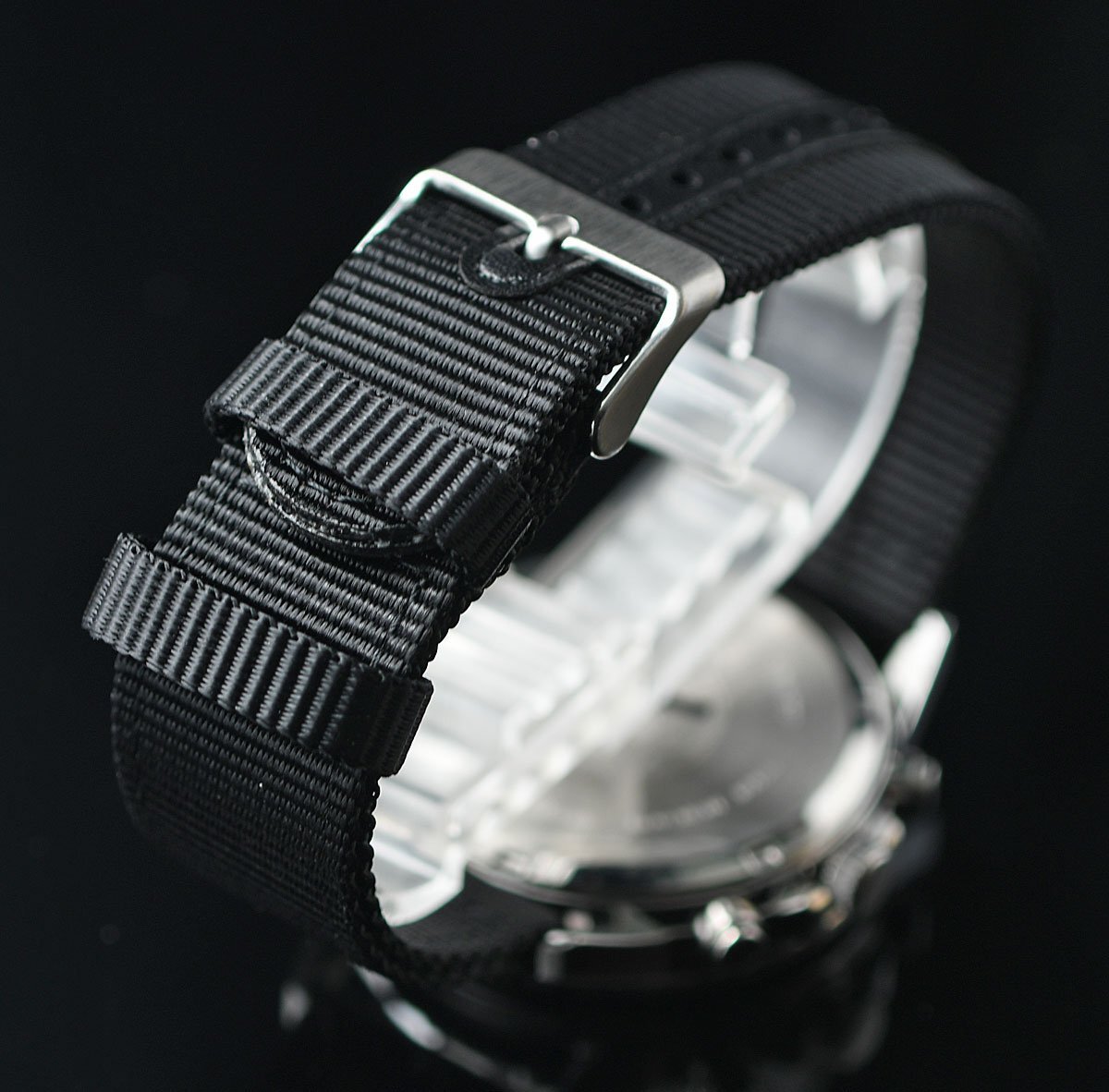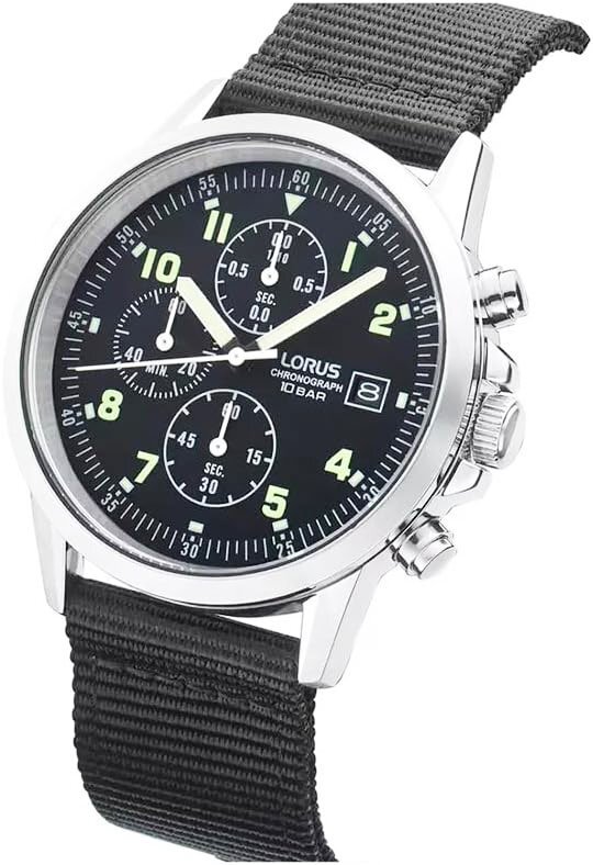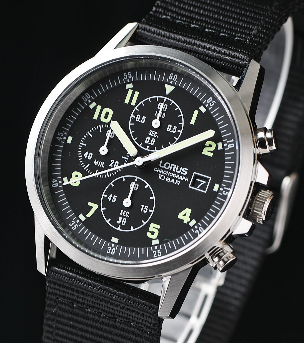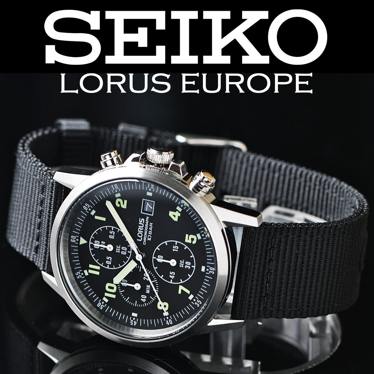 新品 セイコーLORUS ミリタリー軍事クロノグラフ 100m防水 精悍なオールブラック NATOナイロン 逆輸入 メンズ 激レア日本未発売 SEIKO