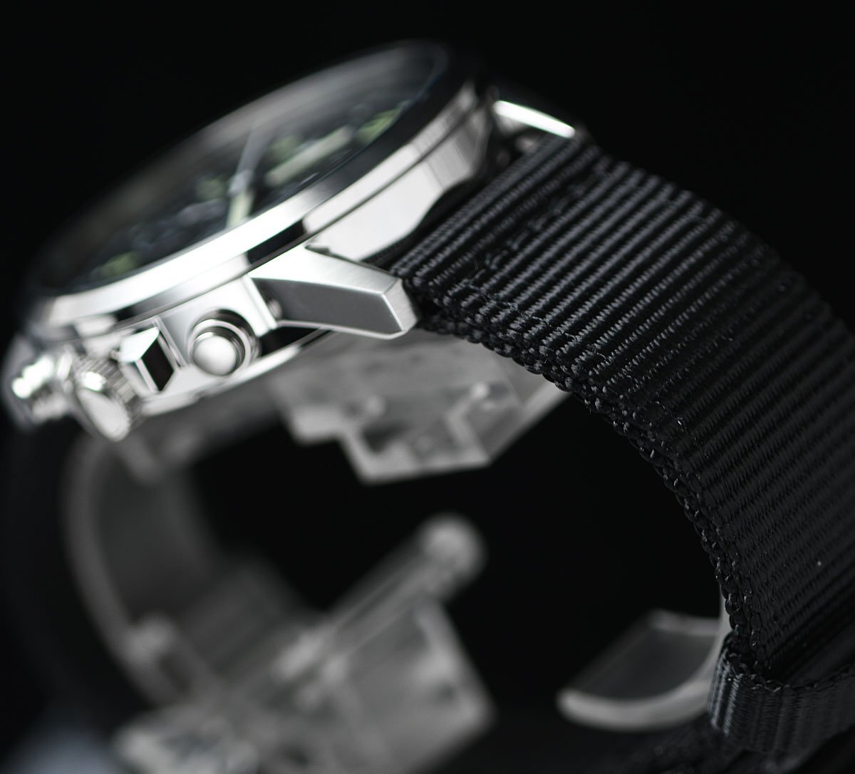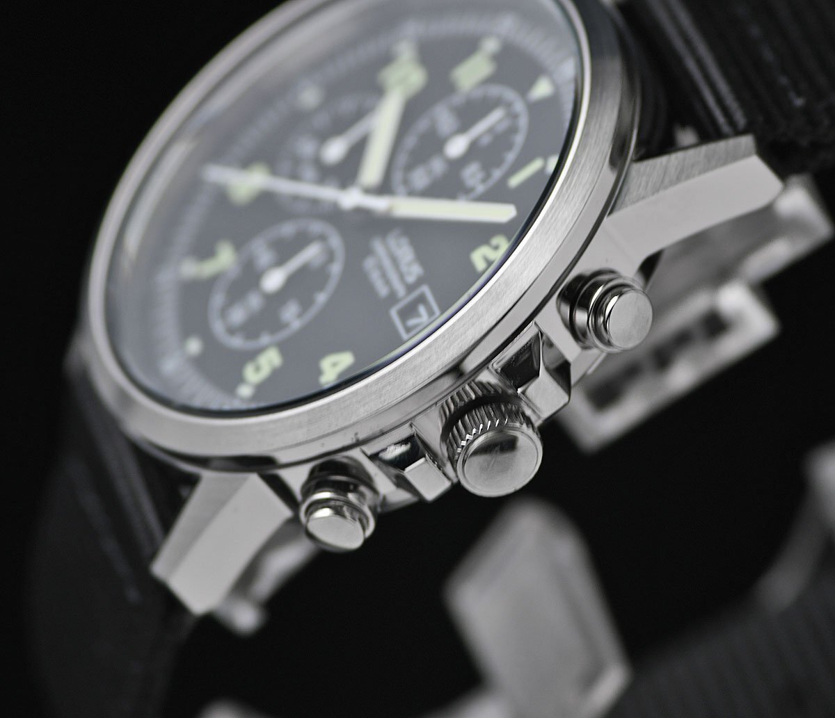 本品は長らく英国空軍にミリタリーウォッチが制式採用されてきたセイコーのDNAを受け継ぐ精悍なミリタリークロノグラフ。