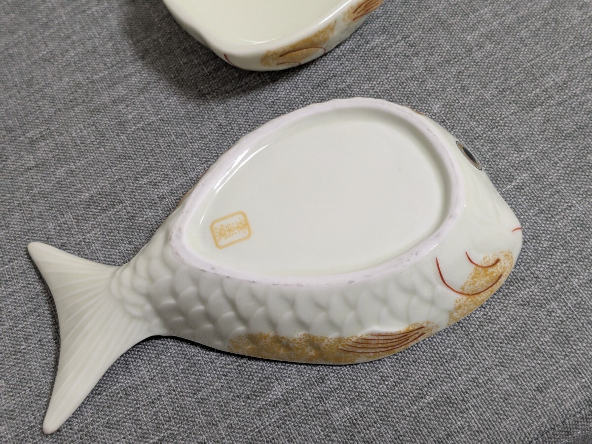 中古 有田焼 幸楽窯 鯛型 小皿 10枚セット 訳あり 蓋無し 錦金たたき 鯛形 和食器 皿 小鉢 お祝い 縁起 kr-0009sn 陶器 食器 ペア