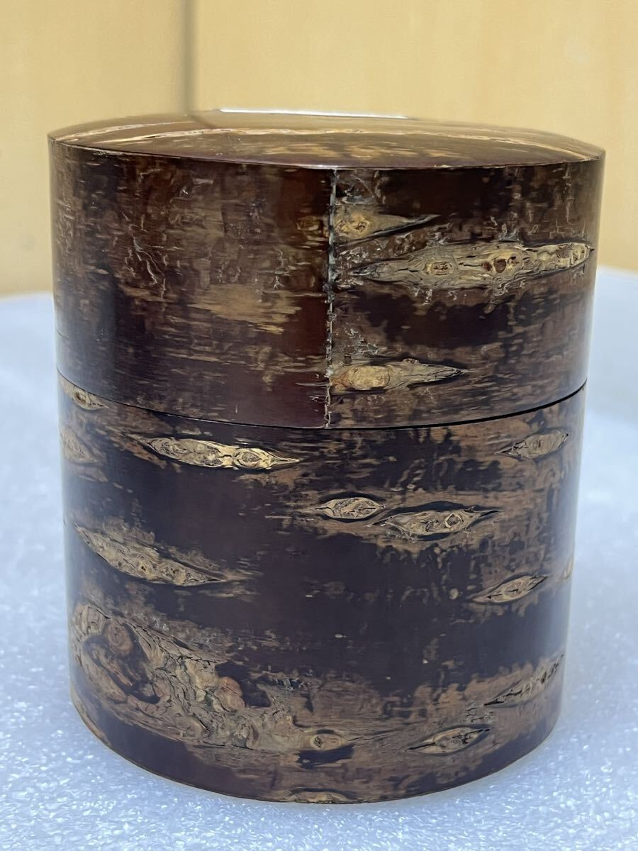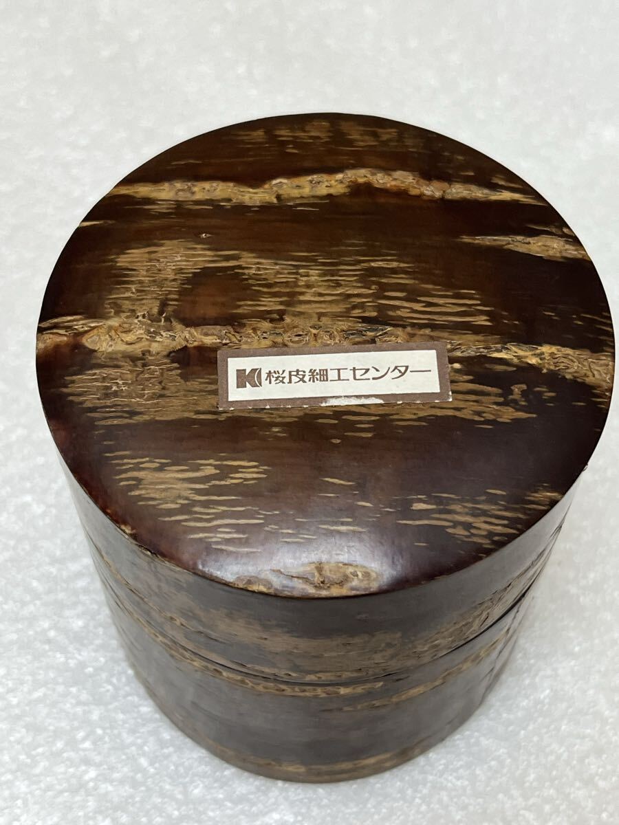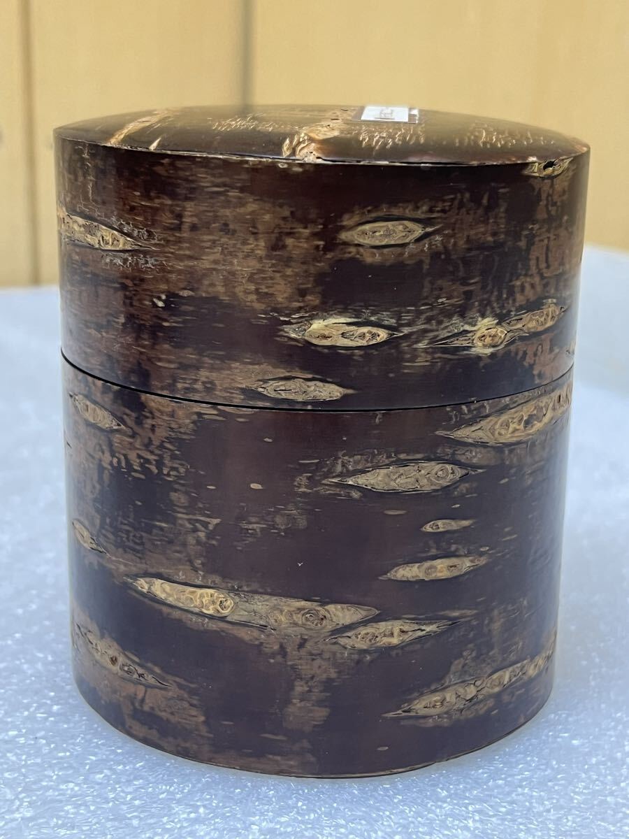 RE7364 桜皮細工 総皮茶筒 角館 約8.3*9cm 現状品 0923