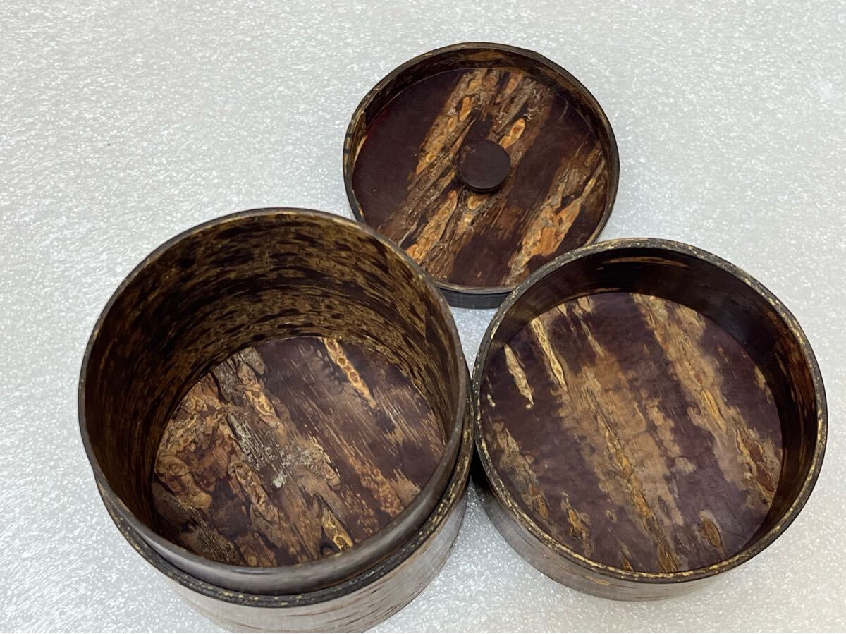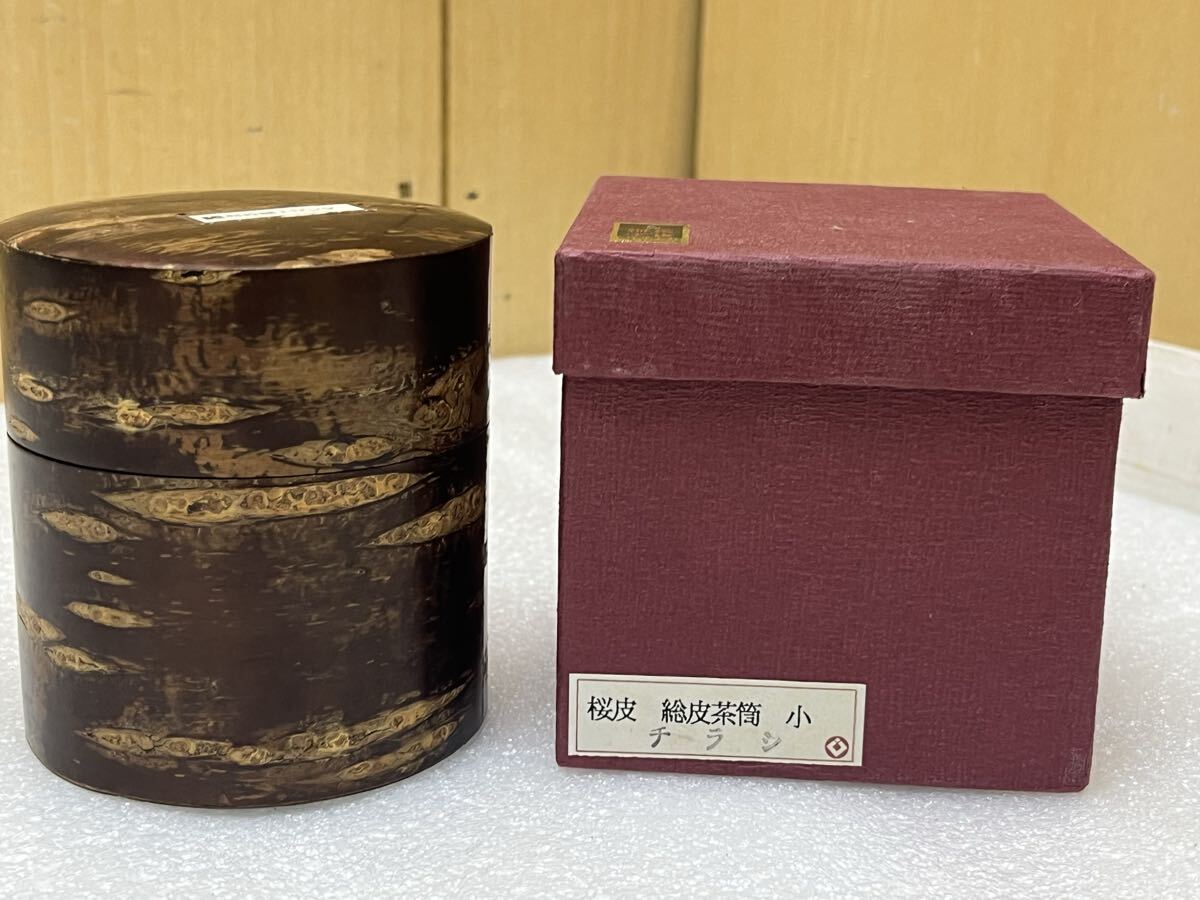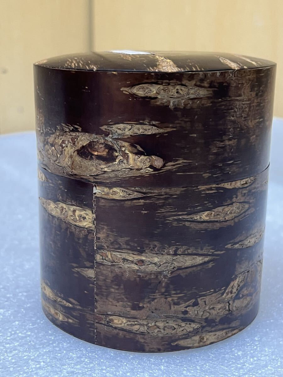 RE7364 桜皮細工 総皮茶筒 角館 約8.3*9cm 現状品 0923