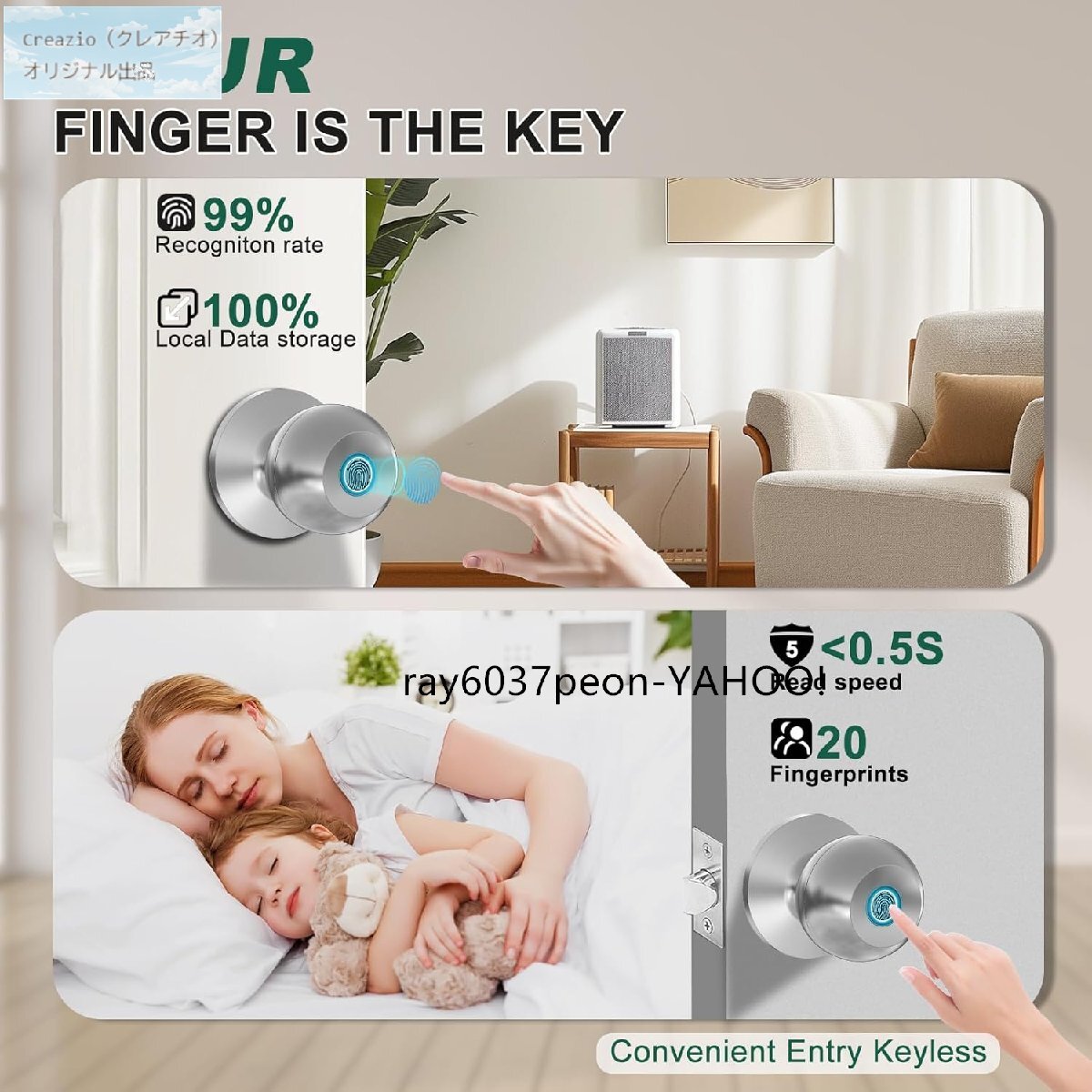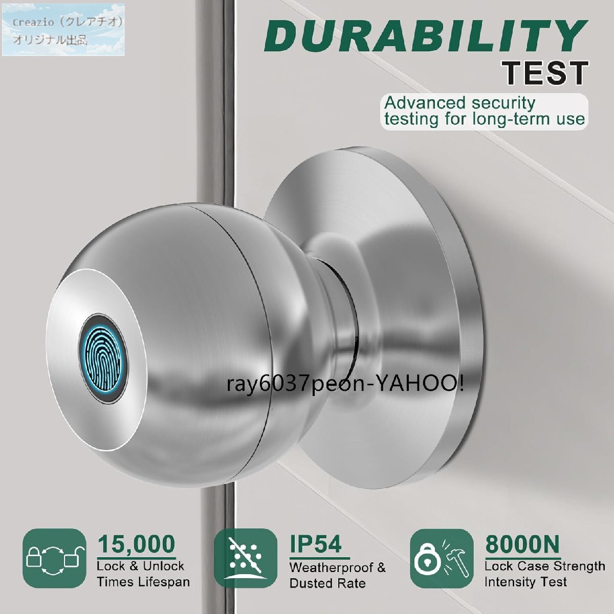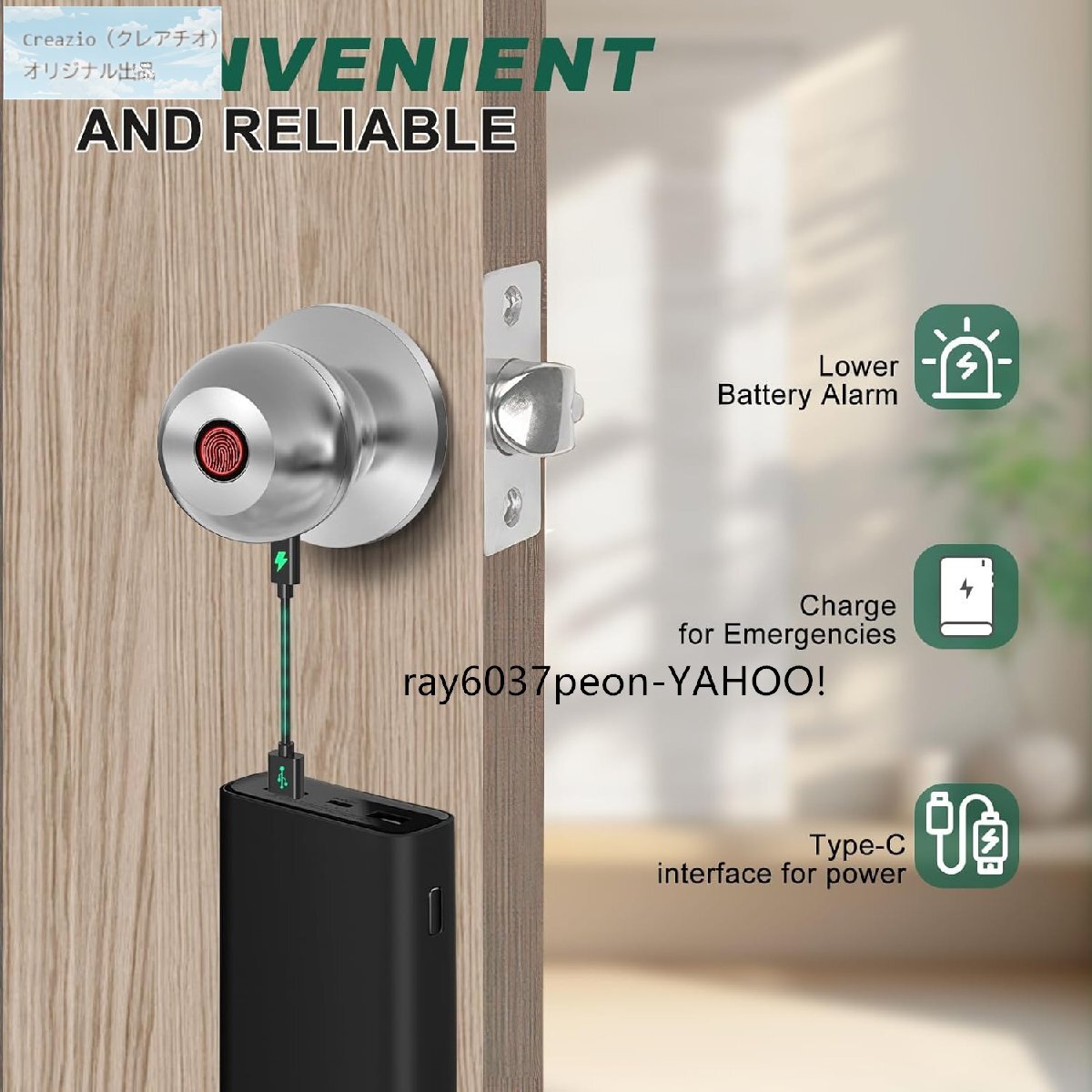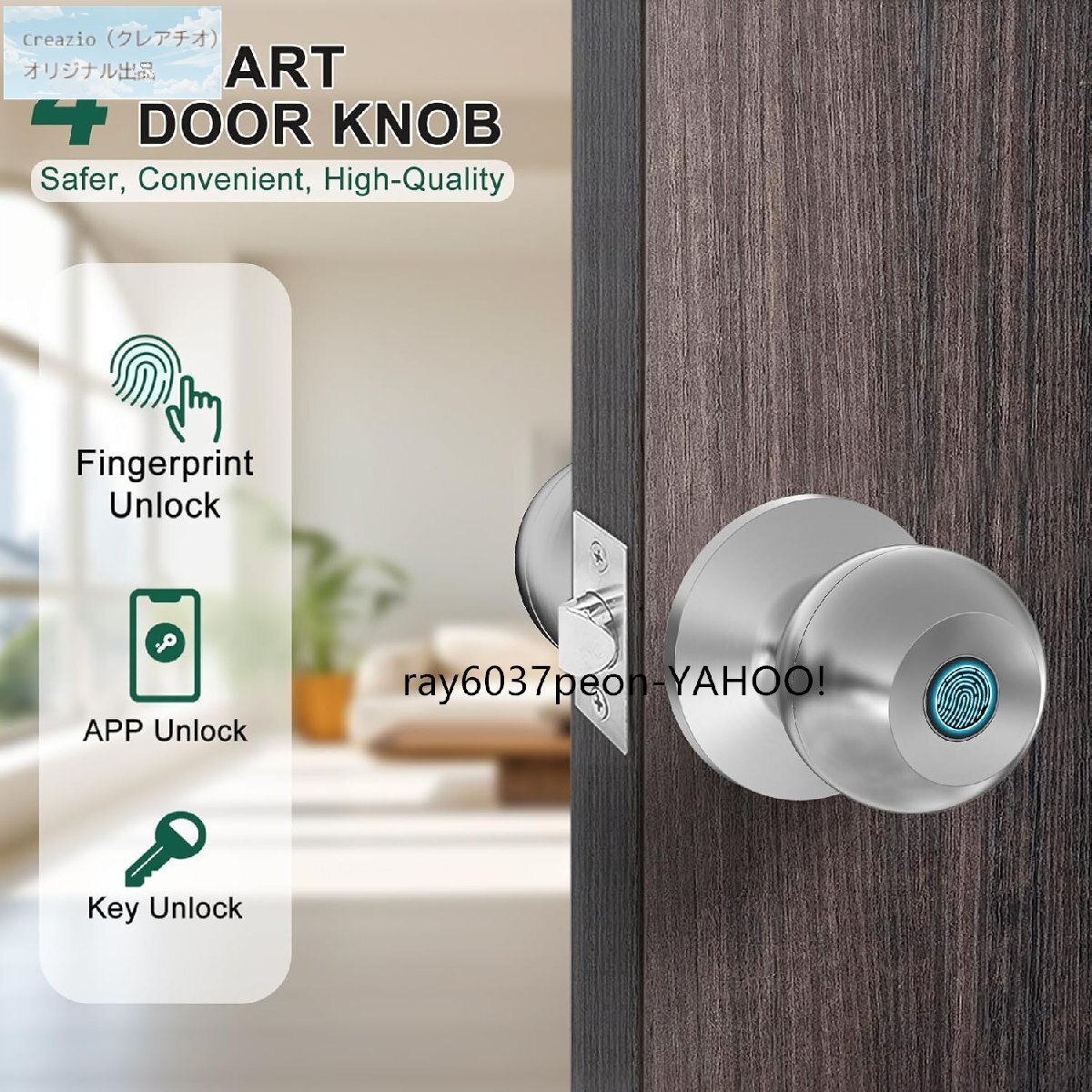 スマートドアノブ 指紋認証ドアロック 生体認証 & アプリ操作 キーレス 玄関/寝室/オフィス用 Type-C緊急充電 (シルバー)