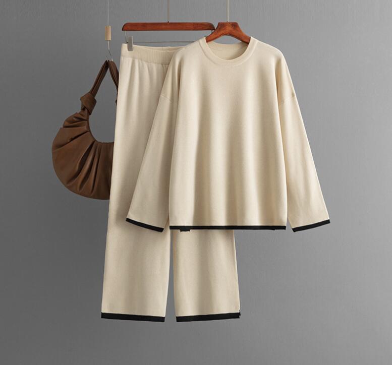 346 パンツスーツladiesレディース ◇ ニット素材 上質 ◇ 秋冬   上下セット  暖かい   ベージュ