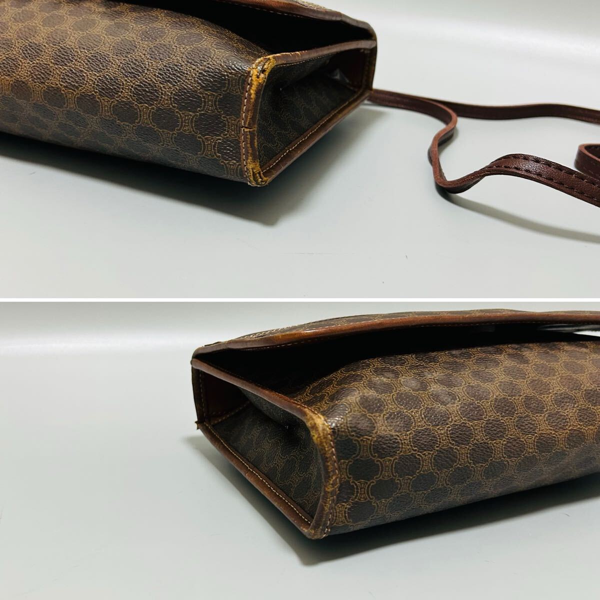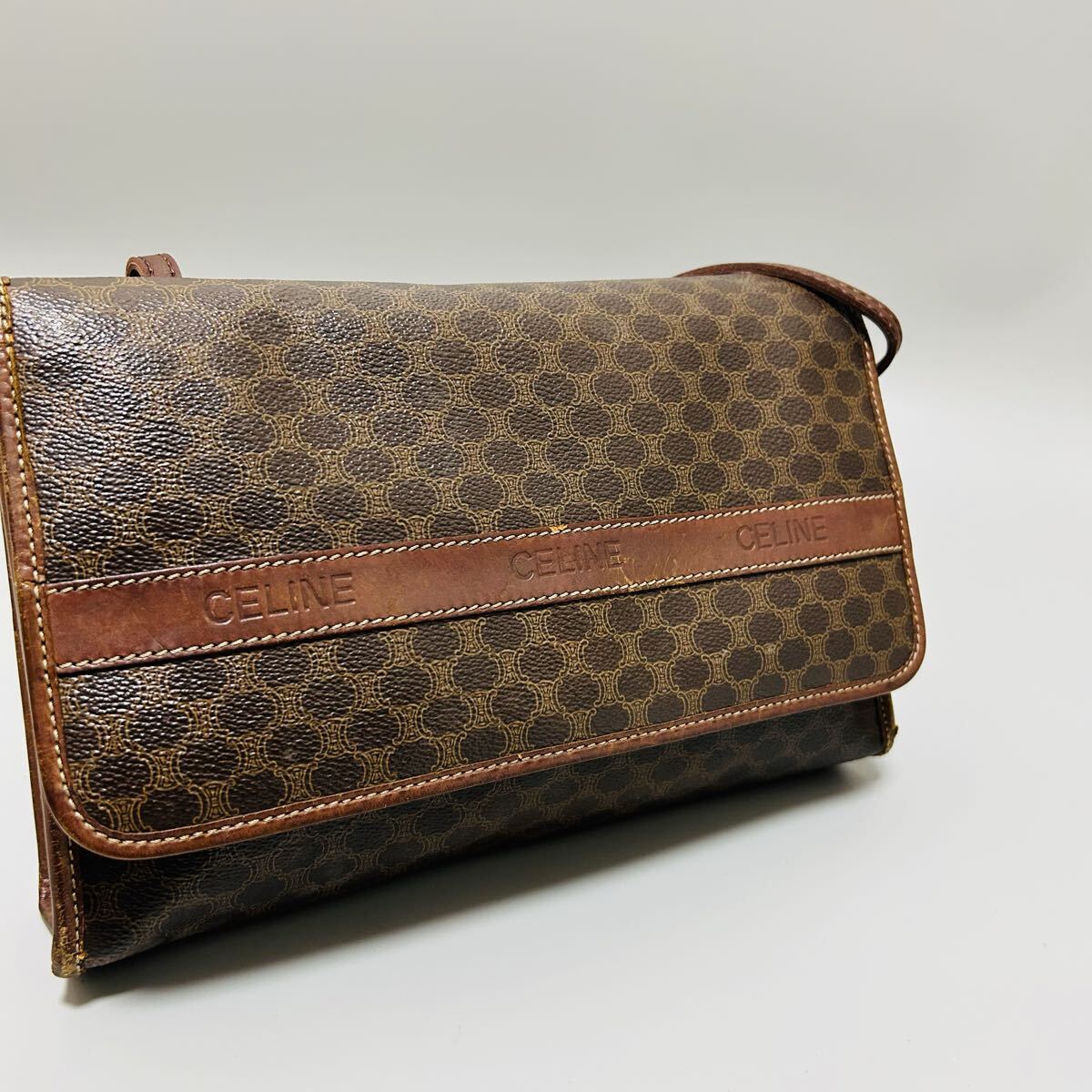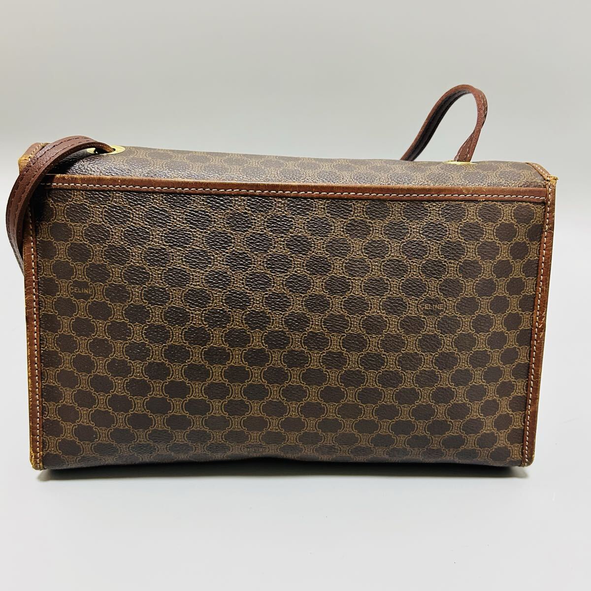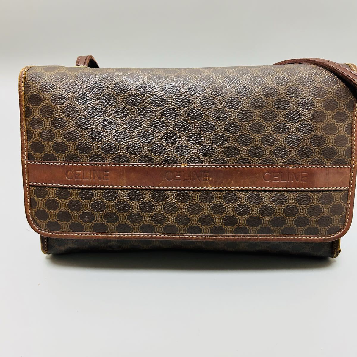 1円 CELINE セリーヌ マカダム柄 PVC×レザー ショルダーバッグ カメラバッグ ポシェット レディース ブラウン系 正規品本物