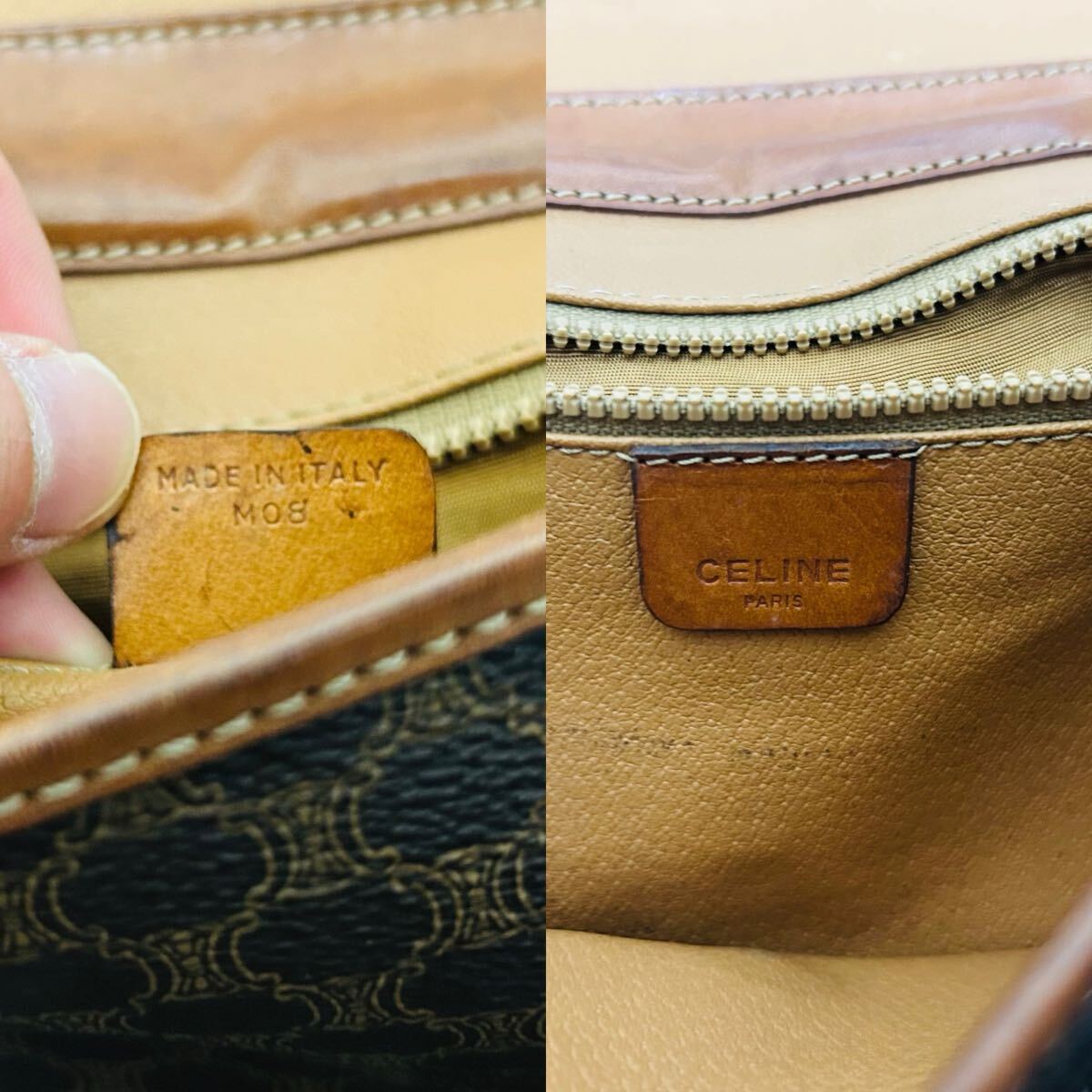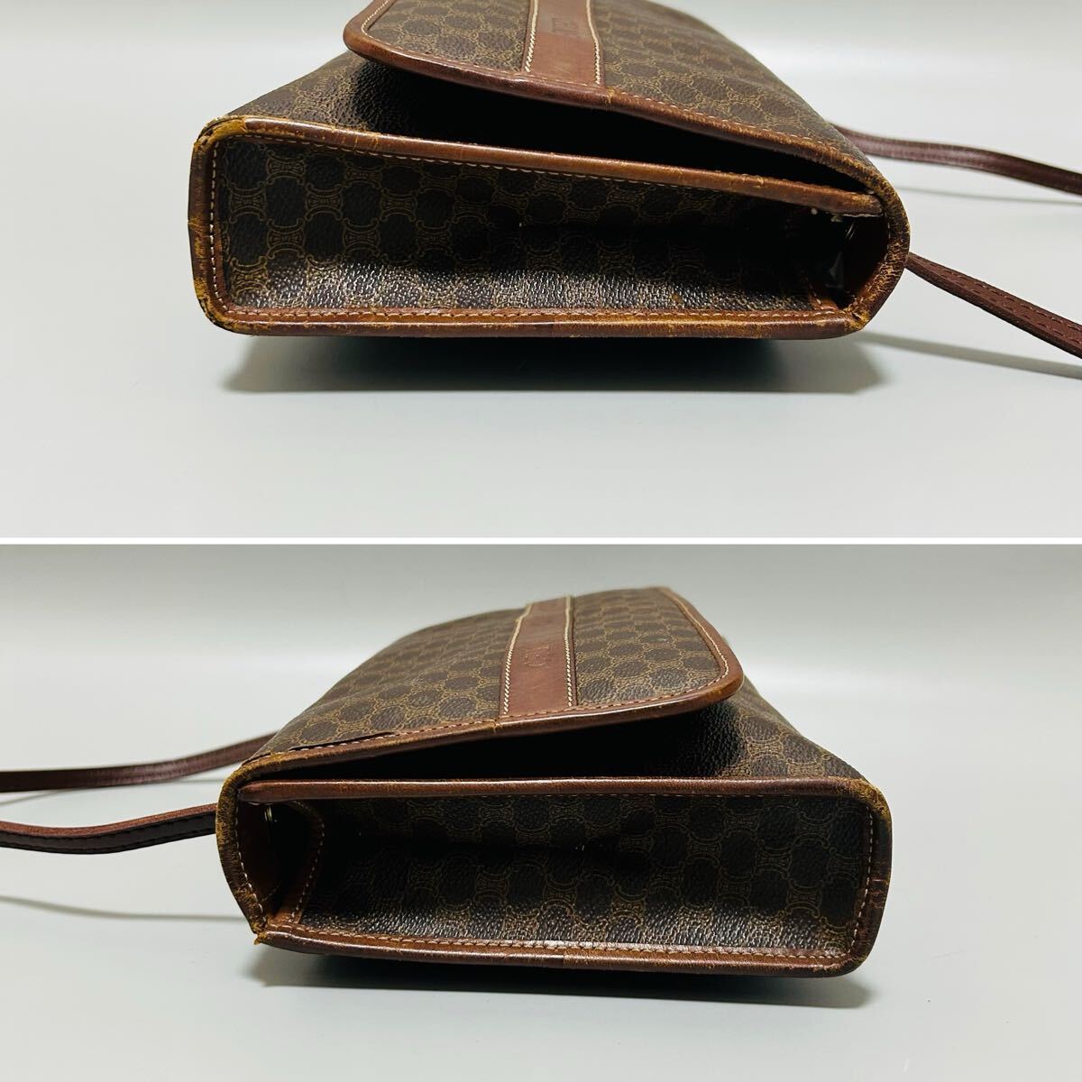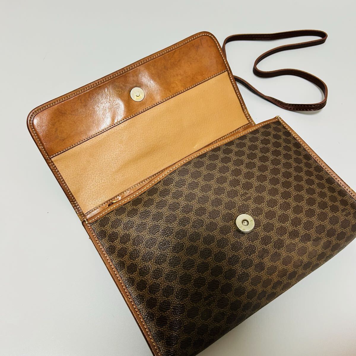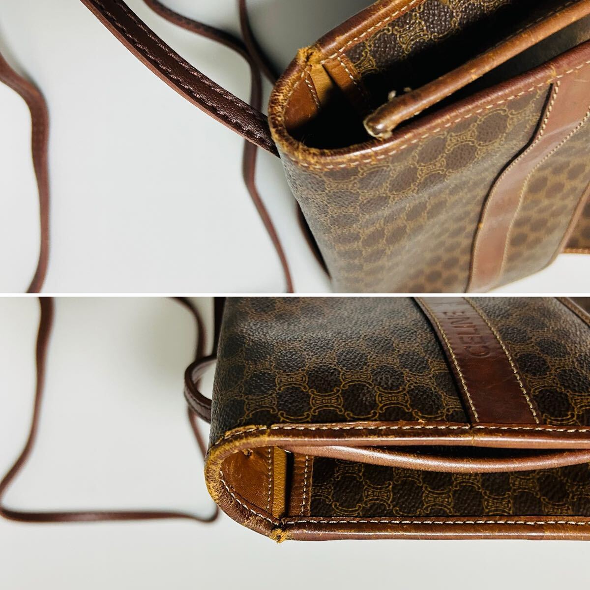 1円 CELINE セリーヌ マカダム柄 PVC×レザー ショルダーバッグ カメラバッグ ポシェット レディース ブラウン系 正規品本物