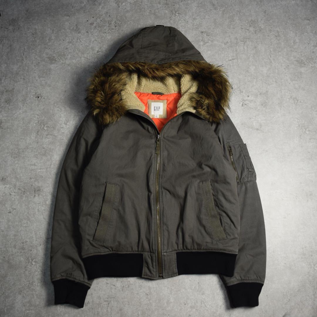 old GAP N2B フライトジャケット ファーフード カーキ 短丈 y2k