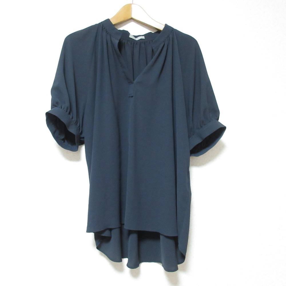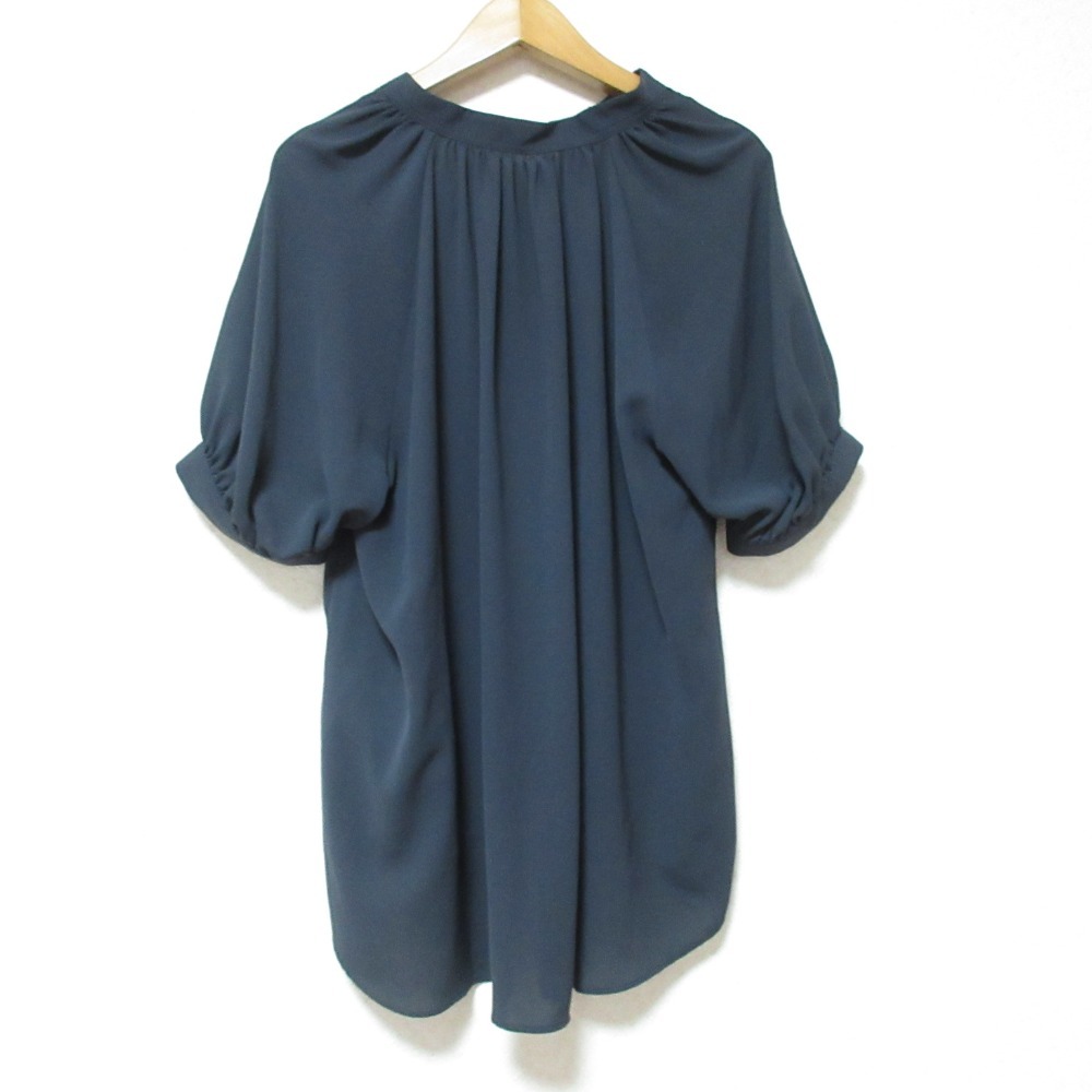美品 theory luxe セオリーリュクス PEARL TWILL JANE ハーフスリーブ スキッパー ブラウス プルオーバー 38 ネイビー
