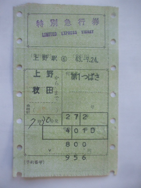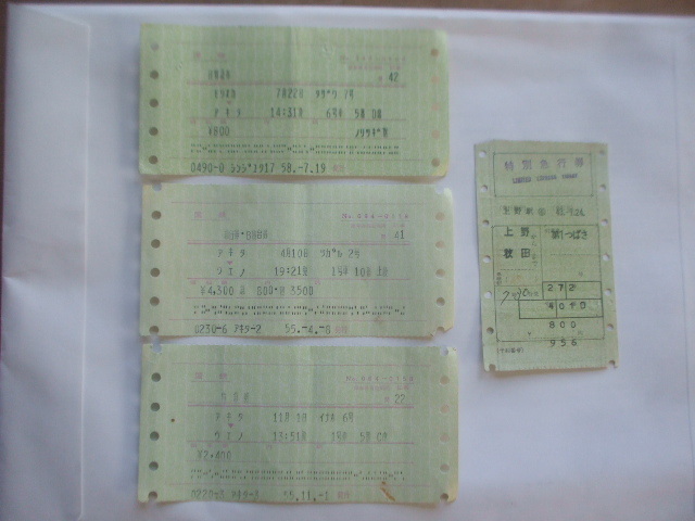 4枚  ●つばさ上野→秋田  ●津軽2号  ●いなほ6号  ●田沢7号